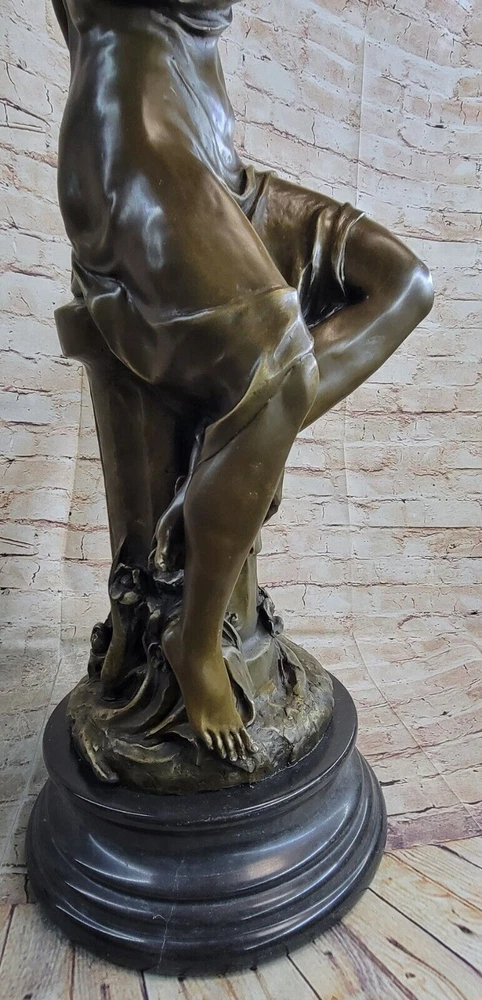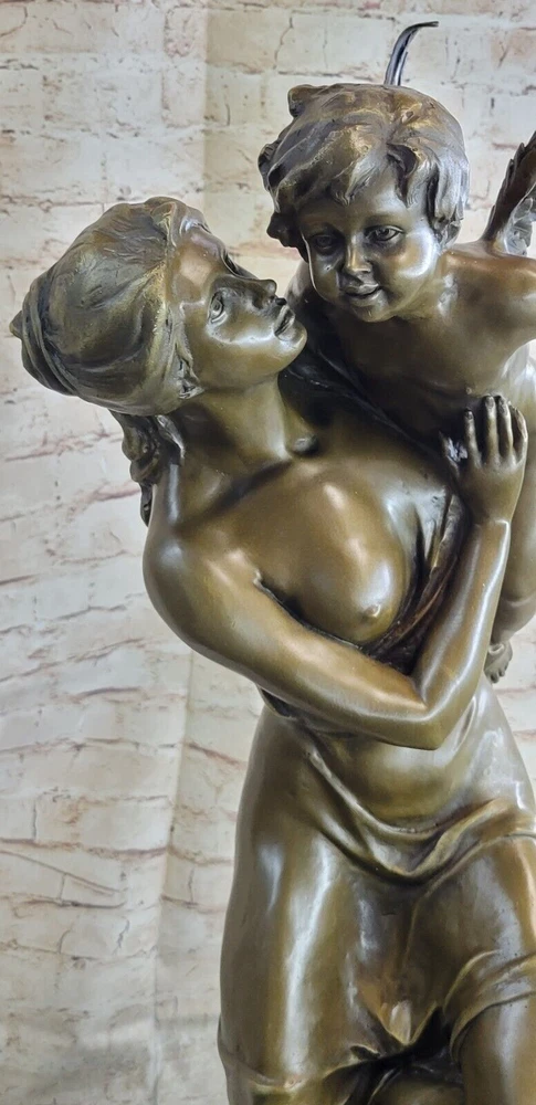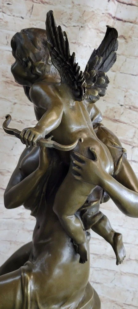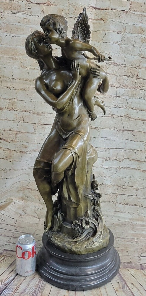 Art Deco Sculpture Angel Nude Woman Her Sleeping Cherub Baby Bronze Gift Art Deco Sculpture Angel Nude Woman Her Sleeping Cherub Baby Bronze Gift Condition : This sculpture is in perfect condition. Bronze Dimensions with Marble Base: Height 32" X Width 12" Marble Dimensions: Diameter 12" Height without base:28" Weight:75 LBS Inventory:97Y29128079 This exquisite sculpture portrays a beautiful woman seated atop a regal column, cradling a precious baby angel, or cupid, in her arms. The cupid holds an arrow, poised and ready to fly away, adding to the enchanting scene depicted in the sculpture. The column is adorned with intricate floral decorations at its base, enhancing the overall beauty and elegance of the piece. Standing on a black marble base, the sculpture exudes a sense of grandeur and sophistication. Crafted using the lost wax method, this large sculpture exhibits meticulous attention to detail and fine craftsmanship. Signed by the artist Milo, it is a timeless masterpiece that captures the grace and beauty of the human form and the innocence of childhood. 32" Tall Original Milo Nude Woman Holding a Baby Angel Bronze Sculpture Marble Video will open in a new window Using the eBay App? Paste link into a browser window: [isdntekvideo] Shipping Terms : Most of our items are shipped via USPS (United States Postal Service) mail or UPS. Most orders are shipped within 24-48 hours of purchase. Please be aware that not all items are available for USPS shipping due to size and weight. We do ship to Hawaii, Alaska, Canada, Puerto Rico, APO/AE, and U.S. Virgin Islands, however, an additional charge may be required. Please contact us before making any purchases in these areas. For Non-USA customers, you may be responsible for all duty, tax, brokerage fees that may be due upon delivery (shipping costs cover freight charges only). We also ship internationally. Please refer to the "Shipping and Handling" chart for the rates for each area. Payment : We accept just about any form of payment. PayPal, Master Card, Visa or American Express credit cards. Money orders, cashiers checks, and even personal or business checks. For governmental institutions, we will also accept a purchase order. Please understand that for personal or business checks we have to wait for the check to clear (usually 7 days) before shipping. Condition : New Detailed Hand Crafted Hot Cast Bronze Satisfaction Guaranteed. This is Stock Photo, Slight Color Variation!! Listing and template services provided by inkFrog