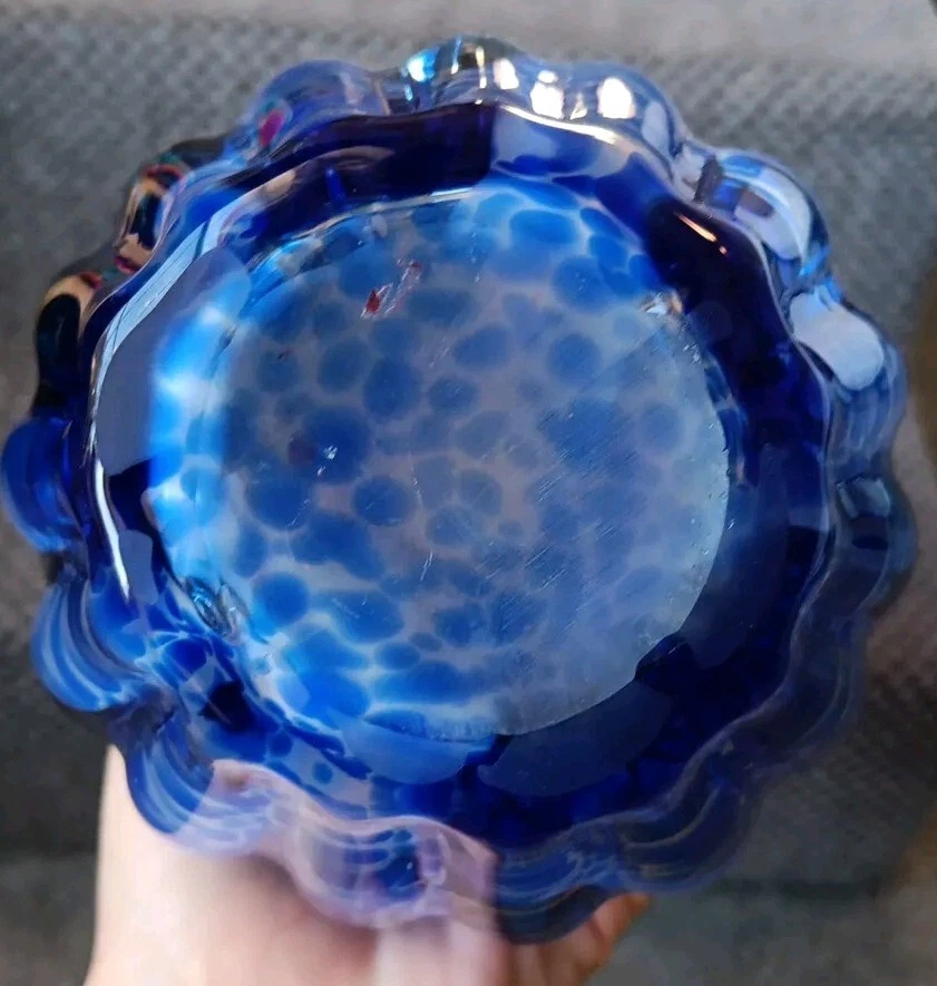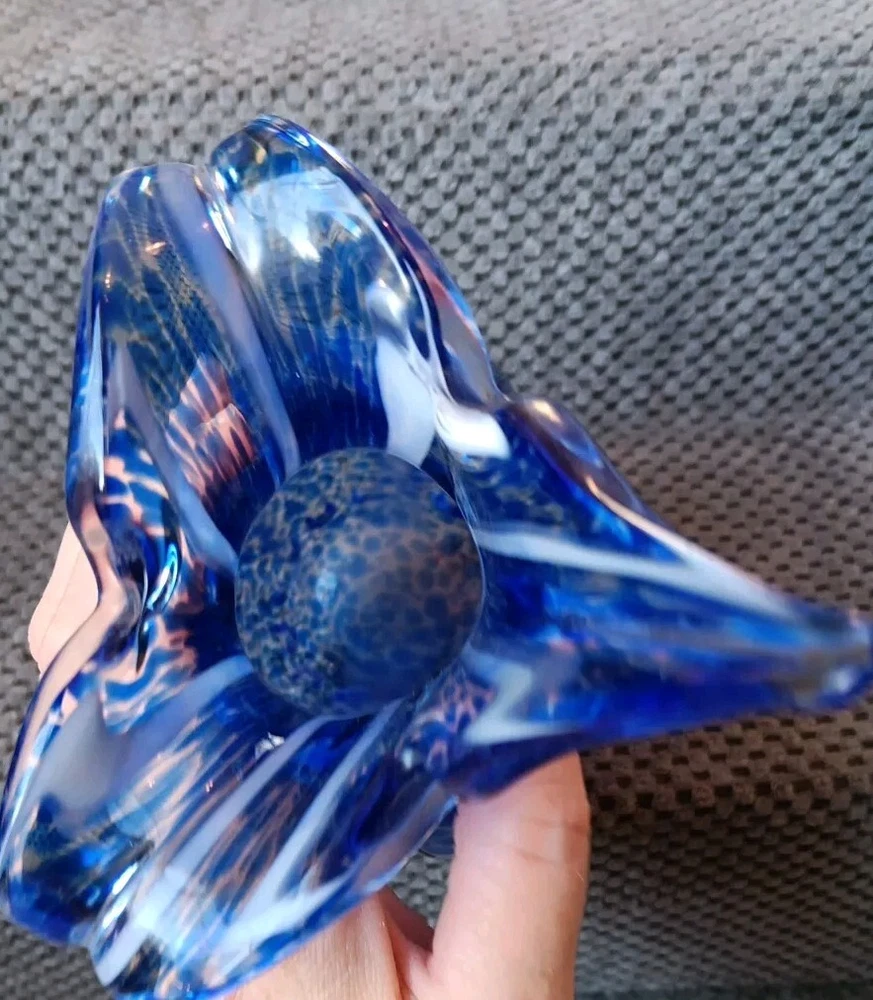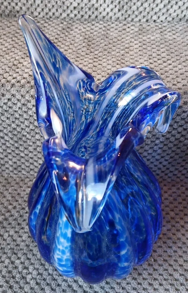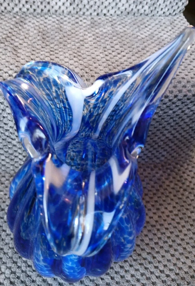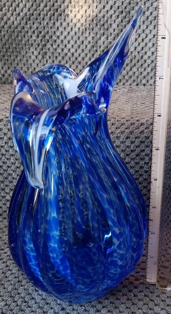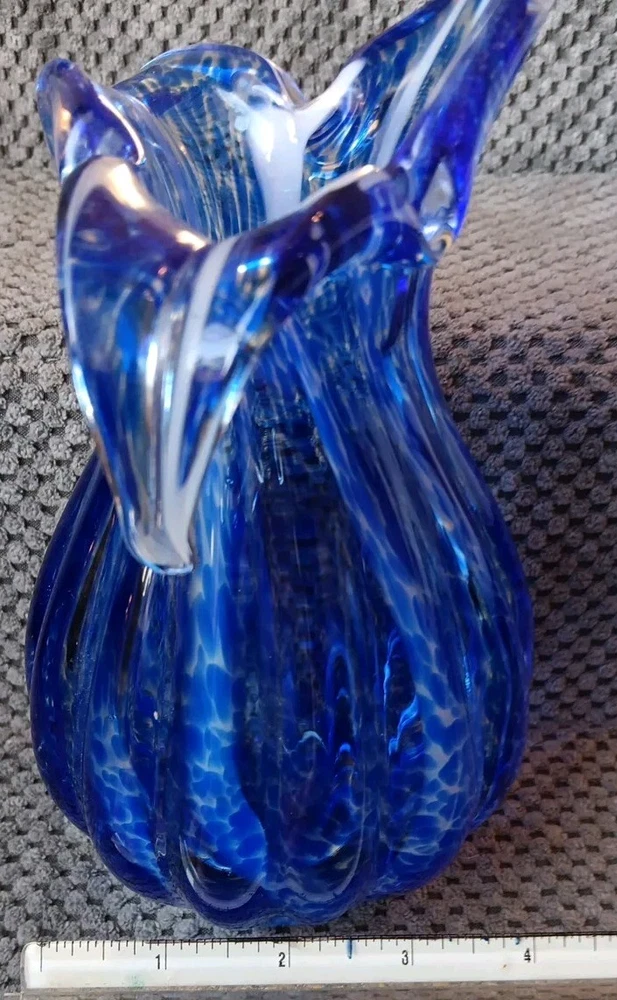 Shape:Flower Budgtin13:Does not applyItem Length:8.5 inTheme:FlowerColor:Blue with White StreaksCharacter:vaseGlassmaking Technique:Hand BlownUPC:Does not applyType:Flower VaseBrand:UnbrandedMaterial:GlassItem Height:8.5 inOrigin:UnknownMPN:Does Not ApplyStyle:Art DecoDepartment:AdultsProduction Style:Art Glass