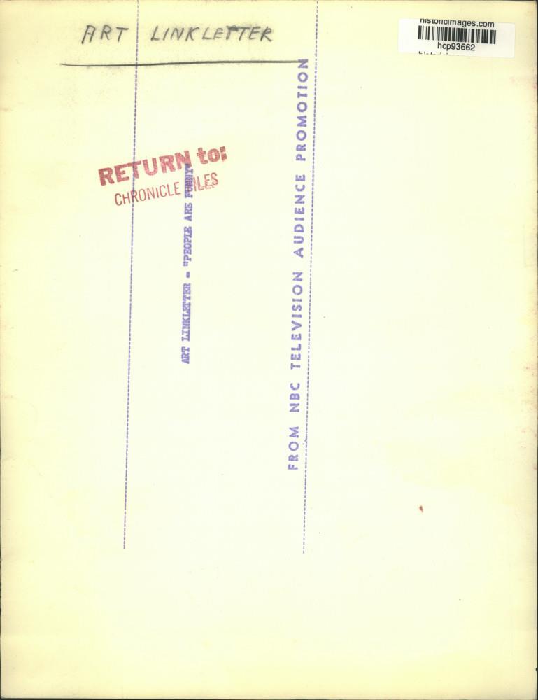 ebay template Note: Please study the images carefully to determine the condition of this vintage photograph, as it may not be in perfect condition. It may contain wrinkles, cracks, and possibly even tears due to its age and how it was handled before it got to us. A scanner may interpret colors and contrast differently than human eyes will, so it is possible that the actual photograph may be slightly darker or lighter in person. This vintage photograph is offered for sale as a collectible item and conveys no transfer of copyright. Press Photo Entertainer Art Linkletter from "People Are Funny," on NBC. This is an original press photo. Art Linkletter. "People Are Funny"Photo measures 8 x 10.5inches. Photo is dated --none. PHOTO FRONT PHOTO BACK Historic Images Part Number: hcp93662 FAQs Q: Can I just download a digital version instead? A: No, we sell only vintage originals and do not make or distribute any copies, including digital ones. Q: Do you combine shipping and invoices? A: Multiple photos won on the same seller ID combine automatically through the eBay checkout process. If you encounter problems with this, send us a message via eBay messaging and we will send you an invoice. Due to eBay limitations, we cannot combine items won on our different seller IDs for a single shipping charge. Q: How quickly do you ship the items once paid? A: We ship within one business day after your payment clears. If you do not receive an "order shipped" email from us by the close of the second business day from submitting payment, please e-mail us via eBay messaging. Q: How do you make sure my photograph arrives safely? A: We package each order between two cross-corrugated pieces of cardboard to ensure that the package is as difficult to bend as possible. We then wrap each order in a plastic sheet to help protect against moisture. We want you to rest assured that we take every precaution to ensure that the photograph you receive will be in the same condition in your care as it was in ours. Q: Will the "Historic Images" watermark be on my photo when I receive it? A: No. This is a digital watermark we use to protect our images. It is not printed on the photo. Q: What are your office hours? A: eBay for us is a business, and a very fun one to be in! We are open M-F 9 to 5 (CST). Therefore, we do not return e-mails and phone calls over the weekend. We observe the following holidays: New Years Day, Memorial Day, Fourth of July, Labor Day, Thanksgiving and the day after Thanksgiving, Christmas Eve and Christmas Day. Q: Where did all these vintage photos come from? A: These original vintage photographs are from various news service and newspaper photo archives from locations around the country including: Boston, Detroit, Tampa, Chicago, Denver, Seattle, New Orleans, Milwaukee, Portland, Spokane, and more. We do not copy or reproduce any photographs -- every item is a unique vintage piece that was housed in a news archive. Q: Can I use this photograph in my book/blog/website? A: The short answer is no. There is no transfer of copyright for republication or reproduction with these photographs when you purchase them, and only photographs taken before 1923 are currently automatically in the public domain. Permission from the copyright holder, which usually can be identified from the back of each photo, must be sought to republish or reproduce the image for any purpose. Q: Do you relist items (in case I miss an auction ending)? A: Auction items that receive no bids are relisted in our store (historicimages-store on eBay) as a fixed-price item and at a higher price than the starting auction price. Q: Do you leave feedback? A: Yes, we always leave feedback for buyers. Our software monitors when our buyers leave us feedback, then notifies us that we can leave feedback for the buyer. Rest assured, if you leave feedback, we will do the same! Check out our family of eBay IDs: historicimages01 Sports Photos historicimages02 Entertainment Photos historicimages03 Americana Photos historicimages04 International & War Photos historicimages05 Transportation Photos historicimages06 Photos of All Subjects historicimages07 Entertainment Photos historicimages08 Newsworthy Photos historicimages09 Entertainment Photos historicimages10 Sports Photos historicimages-store Our largest fixed-price selection historicimages-gallery Hand-picked photos Saturday night auctions About Us Historic Images was formed in September 2009, with a handful of scanners working out of a basement to digitize newspaper photo archives. We have since moved out of the basement, and we can now archive thousands of photos per day. Our company has worked with magazines and newspapers from Detroit, Boston, Denver, Seattle, Tampa, Chicago, and New Orleans, just to name a few. We are constantly adding to our inventory, and have assembled an archive of millions of photos to date. As our company evolved, we began our eBay business, which brings thousands of fresh auctions per week to the world's largest online auction marketplace. Our custom software systems and team of great employees allow us to efficiently scan and sell large photo archives online. At the very core of our company's DNA is a strong commitment to customer satisfaction and strict integrity for our product. Our promise to you is that we will do everything in our power to provide you a great buying experience. Copyright 2009 - Present, Historic Images, Inc. Sell Smarter with Kyozou. Inventory and Ecommerce Management