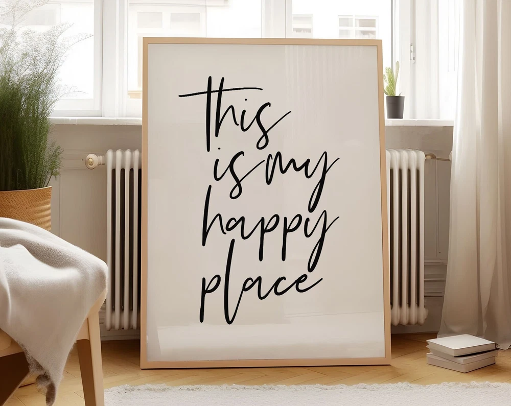 Art This Is My Happy Place Print Positive Quote Wall Art Printable Typography Wall Art Family Room Decor Poster Material: Premium luster photo paper Print type: Inkjet printing One side printed + The finish provides the highest possible resolution and color saturation + Lasts up to 200 years in color and 400 years in black-and-white + Printed on high-quality resin-coated photo base paper medium + Posters can be hung with double-sided tape, tacks, or framed + Hand washing with a gentle cry cloth is recommended for extended durability I will hand select the best choice of paper for your chosen design to ensure top quality results for a beautiful, bright and luxurious print. All prints are sealed in cellophane slips for protection during transportation, and are shipped in a protective cardboard envelope.
