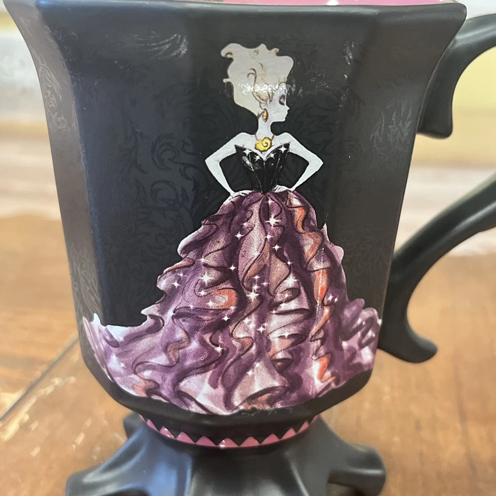 The Art of Disney Villains Design Collection Ursula Claw Footed Mug is a unique and collectible item from the Disney Store. Featuring the iconic character Ursula from The Little Mermaid, this mug is a must-have for any Disney fan or collector. Designed in 2012 in Thailand, this mug showcases the intricate details and villainy of Ursula, making it a special addition to any Disneyana collection. Perfect for enjoying a cup of tea or coffee while reminiscing about the beloved tale of Ariel and her undersea adventures.