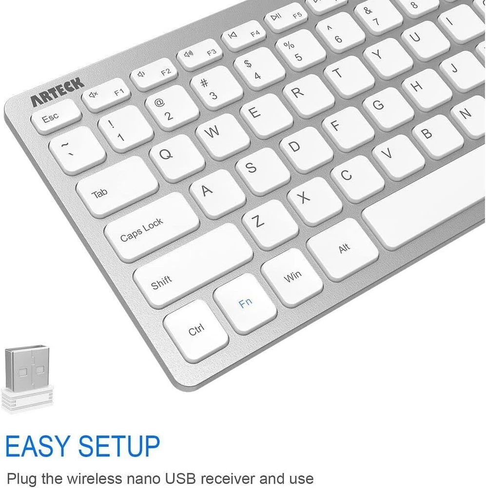 Arteck 2.4G Wireless Keyboard Ultra Slim and Compact Keyboard with Media Hotkeys