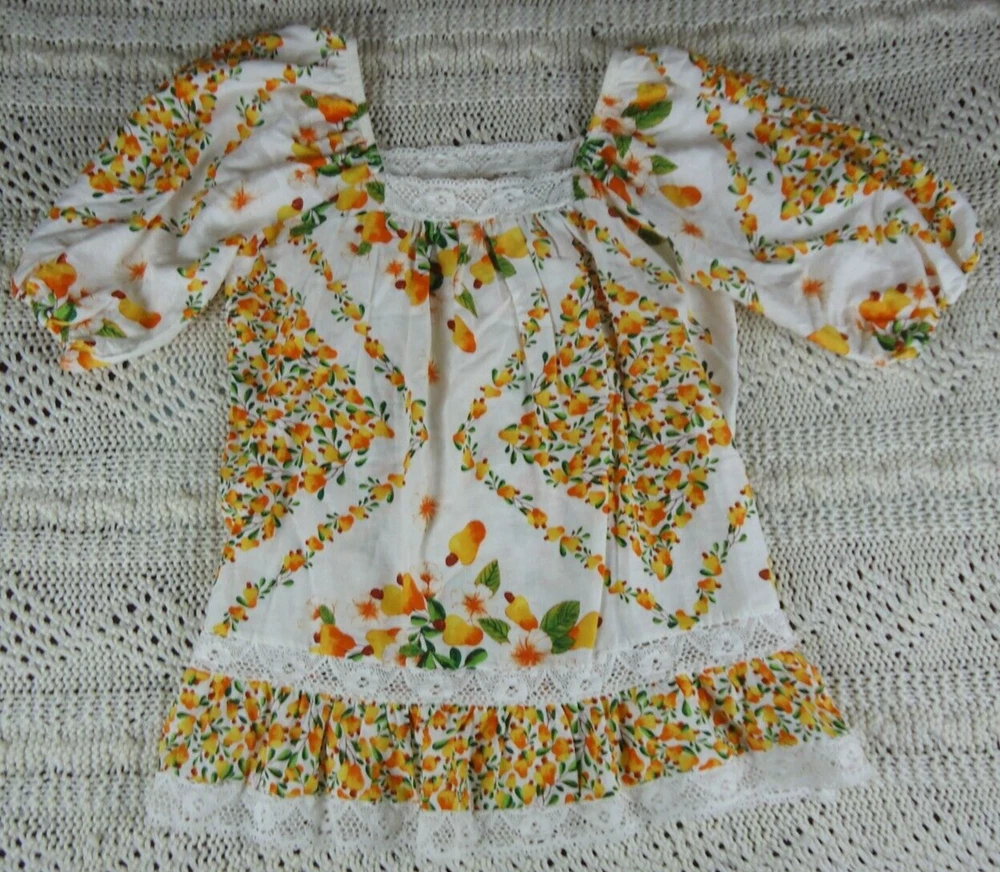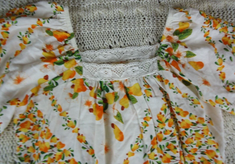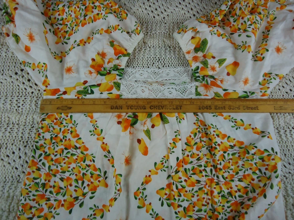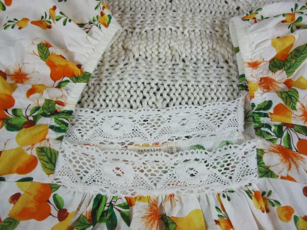 Artelier Women L Lace Trim Blouse Floral Spring Yellow Orange Flowy Peasant BOHO. Please see all pictures for measurements. C5