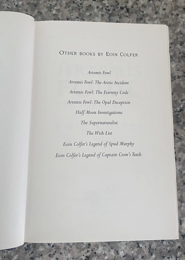 This Book is in Very Good Condition with no Rips, Tares, Writing or Damage to the cover. There is no Dust Jacket. This Book ls Signed by the Artist to a Nigel with more inscription than you see normally with a book signing. It is from a Smoke Free Home. Will Ship with Care in 1 Business after Purchase. This would make someone that likes the Author Eoin Colfer an excellent Christmas Present.
