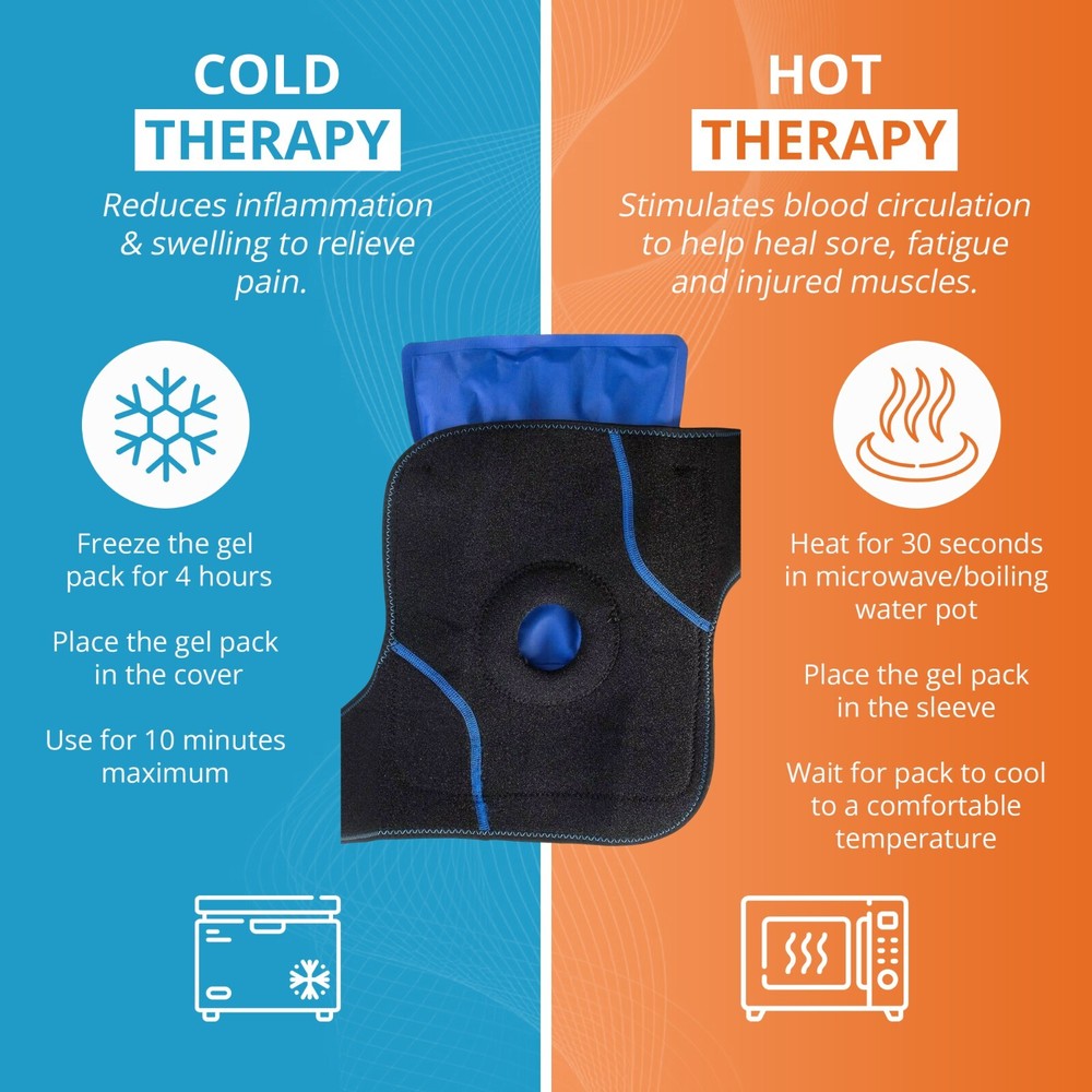 - Dual thermal function: heat and cold therapy for faster recovery, immediate pain relief. - Compression Knee Brace: Includes adjustable straps. Ideal for providing support during treatment of injuries. Aids fast and effective recovery after intense exercise, surgery, arthroscopy, meniscus tears, tennis elbow, swelling and acute muscle pain. Knee pain relief. Ergonomic design: comfortable and secure fit - Versatility for knees, elbows and calves: adaptable to various parts of the body, providing complete and versatile relief. Reduces inflammation.