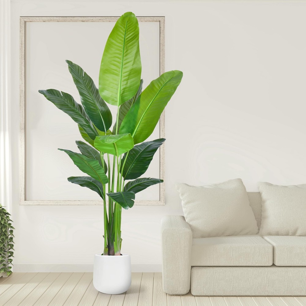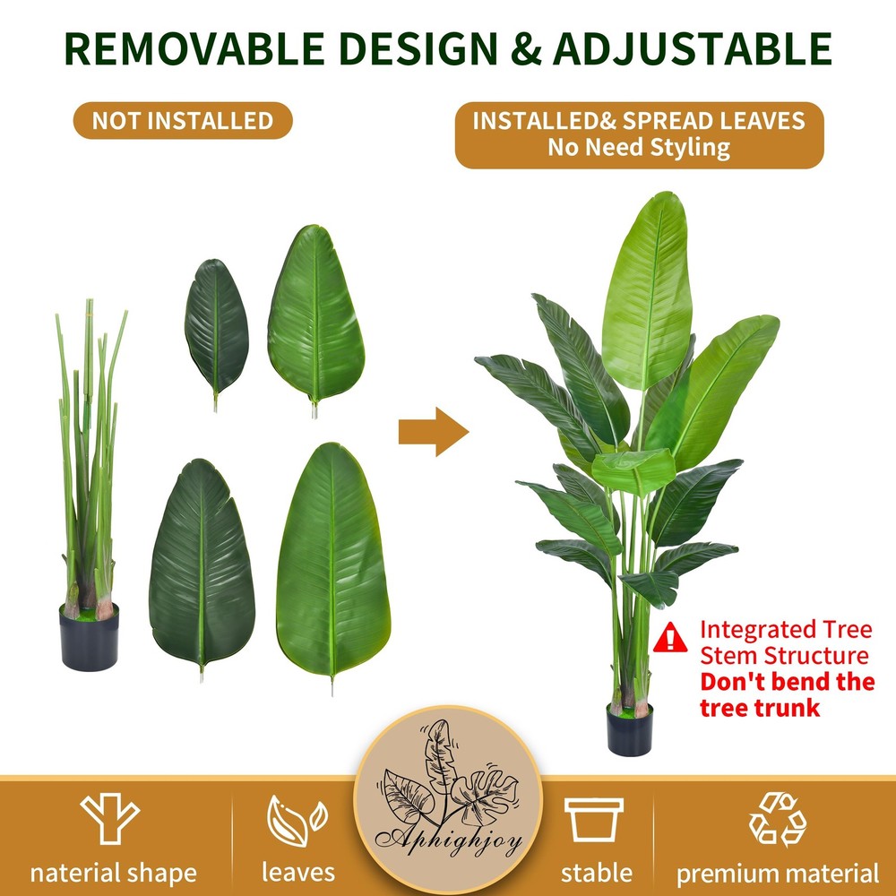 Descriptions: Material:Silk,plastic,wire Color:Green Type(Optional):BirdofParadise,ArecaPalmPlant Size(Optional):4ft(1pack),4ft(2packs),5ft(1pack),5ft(2packs),4ft&5ft(2packs),6ft(1pack) Packinglist: 1SetxArtificialTree 【No Need Styling Fake Tree】: artificial plant is easy to assemble in 2 minutes. No need styling, just insert the leaves into the holes, and you can get a sight of green immediately. Upgraded 1:1 simulation of the real plant showcases the natural growth state. Without ordinary wire holes that affect the appearance, so the tree trunk cannot be bent. Don't bend the tree trunk, as it may break easily. 【Realistic Faux Tropical Plants】: Do you want some green to light and refresh your home? This artificial tree will solve your problem! Elegant Artificial Bird of Paradise tree Adopting an integrated tree stem structure with textured root design and 3D printed realistic leaves, creating a natural plant shape that brings you closer to nature. Suitable for capturing the appearance and feeling of lovely tropical palm trees anywhere. Artificial tree is green all year round. 【5 Size Artificial Plants】: Fake plant palm trees with the size of 3feet/4feet/5feet/6feet/7feet in height for you to choose from. When the palm tree is upright and taken out of the shipping box, the distance from the bottom of the basin to the top of the leaf is 3feet/4feet/5feet/6feet/7feet. You can choose different sizes of floor plants to decorate your house. plantas artificiales decorativas is easy to create luxury style, Gothic style and Northern European style decoration. 【Why Choose Artificial Trees?】: Artificial tree faux plants indoor are always dark green and full, with leaves never falling, no watering, no sunlight, or special care, will not fade, and will maintain its appearance and keep fresh all the year. When there is much dust,just use a damp cloth or a duster to clean them. For outdoors, we recommend that avoid direct sunlight. Suitable for living room, dining room, office,or any building hall. 【Various Uses and Purposes】: fake plants palm tree is an ideal choice for Hawaiian parties, tropical party decorations and tropical islands. Strong enough to support mini lights, small bells or pendants. Jungle party supplies, palm leaf swimming pool party, wedding decor, restaurant, craft supplies,birthday party, baby shower decorations. There is nothing more natural or vivid than ornamental plants Year-round decoration. As close to reality as possible, suitable for any place.