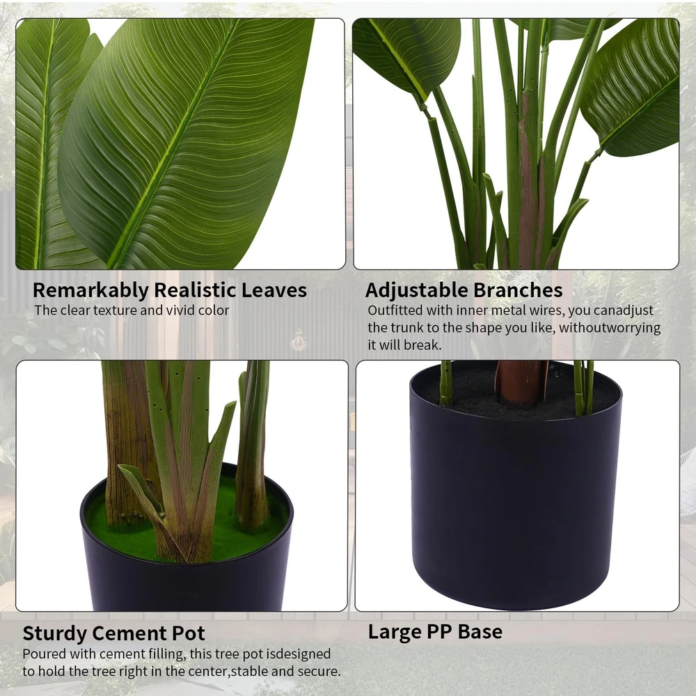 Artificial bird of paradise has the advantages of beautiful shape, natural simulation, no need to take care of. Fake bird of paradise is a good choice for home decoration, outdoor decoration and commercial decoration. Plant species: The bird of Paradise, native to the tropics, is loved by people for its beautiful appearance. The words of the bird of Paradise are freedom, life and love.Our products use real plants to model, make molds, and then produce, visually extremely close to the real plant, is a real highly simulated plant. Maintenance-free: Real bird of paradise plants have relatively high requirements for temperature, soil and sunlight, and need to spend more money, time and energy to maintain. This highly simulated plant only needs to be adjusted to the right position after purchase, and then no maintenance work is required, and still can be bright forever. Material: The skeleton of the branches is made of wire to ensure that the posture of the plant can be well adjusted and maintained. The blades are made of high-quality plastic, and the shapes and colors are very realistic. The base is equipped with a counterweight device, so that the overall stability will not shake. Suitable for a variety of scenarios: the product is not only beautiful in overall shape, but also can be adjusted to easily respond to different scene needs. Placed in the living room, study, bedroom, dining room, porch, balcony and other family scenes, courtyard, garden and other outdoor scenes, the front desk, conference room, office, tea room and other commercial scenes, can be well decorated, so that the overall environment is pleasant. Tips: Hard wire is used inside the stem of the product, so it requires greater force when adjusting the shape. The base is a small black plastic pot, so that you can easily put in your favorite flower pot, the base can also be buried in the earth. If the leaves have dust accumulation after being placed for a long time, you can wipe them with a wet towel.