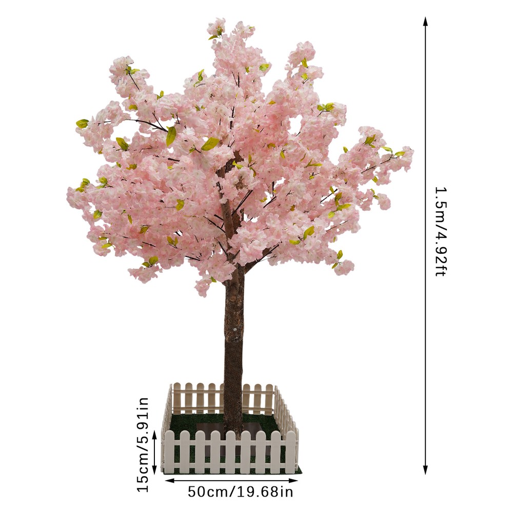 Artificial Cherry Blossom Trees, Light Pink Fake Sakura Flower, Light Pink Sakura Tree Description If you want to fill your wedding site or exhibition hall with more romantic elements, then choose this artificial cherry blossom tree. It is made of high-quality solid wood, silk fabric, plastic and steel, environmentally friendly and long-lasting. Its beautiful flowers, realistic shapes and vibrant colors make you feel like you are in a natural garden, giving you an immersive experience! Application It can be widely used for decorating wedding sites, photography buildings, clothing stores, home walls, hotels and other places. It is suitable for porches, balconies, terraces, gardens, shopping malls, backyards, playgrounds, wild parties, weddings and other places. Artificial Cherry Blossom Trees Light Pink Fake Sakura Flower Pink Sakura Tree Artificial Cherry Blossom Trees, Light Pink Fake Sakura Flower, Light Pink Sakura Tree Description If you want to fill your wedding site or exhibition hall with more romantic elements, then choose this artificial cherry blossom tree . It is made of high-quality solid wood, silk fabric, plastic and steel , environmentally friendly and long-lasting. Its beautiful flowers, realistic shapes and vibrant colors make you feel like you are in a natural garden, giving you an immersive experience! Key Features High-quality Material: It is made of high-quality solid wood, silk fabric, plastic and steel through the painting process that is resistant to corrosion, tear, deformation, and fading, making it suitable for both indoor and outdoor use, ensuring a long service life. Privacy Protection: Artificial cherry blossom tree creates a natural barrier that can effectively block the view from the outside, allowing you to enjoy your privacy without compromising style or beauty. Environmental-friendly : It is non-toxic and does not produce harmful gases. It can also be recycled and reused, making it very friendly to the environment and users. Realistic and Pretty: It is made of high-quality solid wood and silk fabric through the painting process to offer a remarkable and lifelike appearance that is almost indistinguishable from real plants, bringing you an intense and immersive experience. They are an excellent and practical addition to any space. Atmosphere Maker: The light pink cherry blossom tree can brighten up a dull wedding site, birthday party, or exhibition, bringing an unparalleled romantic and dreamy atmosphere to your party or banquet site. User-friendly Design: The product eliminates watering, pruning and fertilizing, avoiding the hassle of daily care and saving money and effort. In addition, using artificial plants can avoid the trouble of allergies . Simple and Convenient: The simple construction and matching artificial turf and fencing allow you to quickly assemble and get started. In addition, you can easily insert the branch into the hole made of steel by following the number on the branch, which is also convenient for you to adjust the direction of the branch. Practical Gift: With a beautiful appearance, this product is an ideal holiday and housewarming gift for family, friends, and loved ones. Protective Package: To prevent damage to the product due to bumps in transit, we place bubble bag wrap to protect the product as much as possible. Quality Service: We are honored that you have chosen our product. We have sufficient confidence in the quality of the product so that you can buy it confidently. But if you have any questions, you can contact our customer service, he will patiently answer and solve your problems . Details Square Base: It allows the product to be placed smoothly on the ground and is not easy to tip over. Artificial Turf: Square artificial turf creates a sense of ambiance of a green lawn and instantly puts you between the grass and trees in a more realistic way. Application It can be widely used for decorating wedding sites, photography buildings, clothing stores, home walls, hotels and other places. It is suitable for porches, balconies, terraces, gardens, shopping malls, backyards, playgrounds, wild parties, weddings and other places. Specifications Material: Solid Wood, Silk Fabric, Plastic, Steel Process: Painting Color: Light Pink Feature: Artificial Style: Modern Assembly Required: Yes Tree Type: Cherry Blossom Tree Gross Weight: 5kg/11.02lbs Fence Size(L*H): 0.5*0.15m/1.64*0.49ft Tree Height: 1.5m/4.92ft Package Size: 110*30*30cm/43.31*11.8*11.8in Package Included 1*Artificial Cherry Blossom Tree 1*Artificial Turf 1* Fence Notes 1. During transportation, some leaves or petals may be crushed or fall off and can be reinstalled. 2. Please note that the product height is ground level to the highest branch. Long-distance transportation may cause the branches to crush and thus the standard height will not be reached, please make sure you do not care about this before purchasing. 3. Please note that even if the product trunk is treated with anti-corrosion , but in a closed, warm and humid environment, it will still have the problem of mold growth (as long as you keep the environment dry basically will not appear this phenomenon). Therefore, after you receive the product, you must take out the product as soon as possible and ensure that the installation environment is dry, so as to effectively prevent the problem of mold and mildew . In the unfortunate event that mold develops on the trunk of a tree, please place the product in a ventilated dry or sunny place to dry, and wipe it with a mold remover and a rag (not included). 4. If the product is left unmaintained for a long time, it will stick to dust, simply blow off the dust with a hair dryer(not included) or rinse with water and air dry. Some small leaves and flowers are not suitable for cleaning, it is recommended to wipe them with a damp rag(not included). 5. Please note that this product does not have flame retardant, please keep it away from ignition sources. 6. Unopened product has