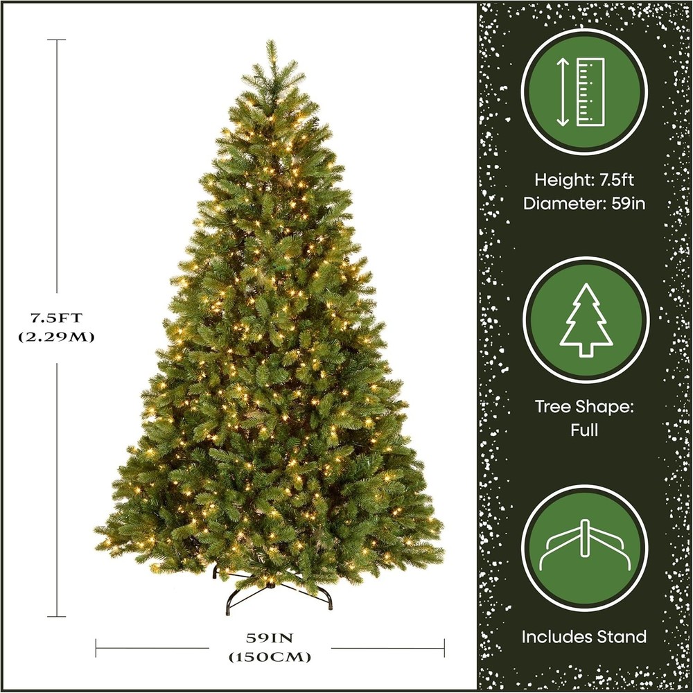 Artificial Christmas Tree 7.5 ft Pre-Lit Downswept Fir Green Full Tips Lights ‹ › ‹ › ‹ › ‹ › ‹ › ‹ › ‹ › ‹ › ‹ › ‹ › Experience Realism and Joy with the Down Swept Douglas Fir Artificial Christmas Tree Transform your holiday celebrations with the stunning 7.5-foot Downswept Douglas Fir Full Pre-Lit Artificial Christmas Tree. Its wide 59-inch base diameter offers a majestic presence, making your home a winter wonderland. Crafted with hundreds of 'Feel Real' individually crafted branch tips, this tree provides a full-bodied, lifelike appearance and feel, closely mimicking a real tree. The tree is pre-strung with 750 white lights, which remain lit even if a bulb goes out, ensuring a continuous festive glow. Designed for easy setup, the hinged branches drop down for quick assembly and fold back for convenient storage, with an estimated shaping time of 45-60 minutes to achieve a lush, natural look. Made from high-quality, hypo-allergenic, fire-resistant materials, it guarantees safety and durability for of holiday enjoyment. The sturdy metal base ensures stability, while the included spare bulbs and fuses simplify maintenance. This zero-maintenance, realistic tree is perfect for creating magical holiday moments with family and friends. Experience the magic of the season with this centerpiece, bringing warmth, cheer, and beauty into your home for many holidays to come. Shipping Free & Fast Shipping - We offer free shipping to most of the USA with a normal delivery time of 3-7 days. However, due to the current situation, additional delivery time (up to 3 weeks) may be required for some items. Alternative Carriers - We may use alternative carriers (e.g. USPS, FedEx, UPS, etc.) to ensure your package arrives safely and on time. Due to the use of multiple carriers, we are unable to provide a tracking number automatically. Handling Time - Orders are processed and shipped within 1-2 business days of receiving cleared payment. Shipping Restrictions - Shipping to Alaska, Hawaii, Puerto Rico, Guam, and other US territories may incur shipping charges or delivery restrictions. Please contact us before ordering, or your order can be refunded/cancelled. State Restrictions - There may be restrictions based on your state of purchase. For example, certain items may not be shipped to California due to state regulations. Contact for Tracking Updates - If you require tracking updates or have any concerns about the delivery of your order, please feel free to contact us, and we will be happy to assist you. Return 30-Day Hassle-Free Returns - We want you to be completely satisfied with your purchase. If you are not, you can return the item within 30 days of receiving it for a full refund or exchange. Easy Return Process - To start a return, simply contact us and we will provide you with a prepaid return shipping label and detailed instructions. Restocking Fee - There are no restocking fees for returns. However, the buyer is responsible for return shipping costs if the return is not due to a seller's error. Refund Processing Time - Refunds will be processed within 5 business days of receiving the returned item in its condition. Payment We accept all major credit cards, PayPal, and Apple Pay for your convenience. Your payment information is secure and encrypted to ensure a safe and seamless transaction. Please complete your payment within 3 days of purchase to avoid any delays in shipping. Feedback Your feedback is extremely important to us. We strive to provide the best products and customer service possible. If you are satisfied with your purchase, please take a moment to leave us a positive review. If you have any concerns or issues with your order, please contact us before leaving negative feedback. We are committed to resolving any problems and ensuring your satisfaction. Contact Us If you have any questions or concerns, please feel free to out to our customer support team. You can contact us through the eBay messaging system. We are available Monday to Friday, 9:00 am to 5:00 pm EST, and we will do our best to respond to your inquiry within 24 hours. Buy it now and enjoy a pleasant shopping experience! Unit Quantity: 1.0 count Material: Metal,Polyvinyl Chloride Product: Pre-Lit Artificial Christmas Tree Occasion: Christmas Size: 7 ft Color: Green Type: Pre-Lighted Tree Artificial/Fresh: Artificial Item Height: 90 Inches Number in Pack: 1