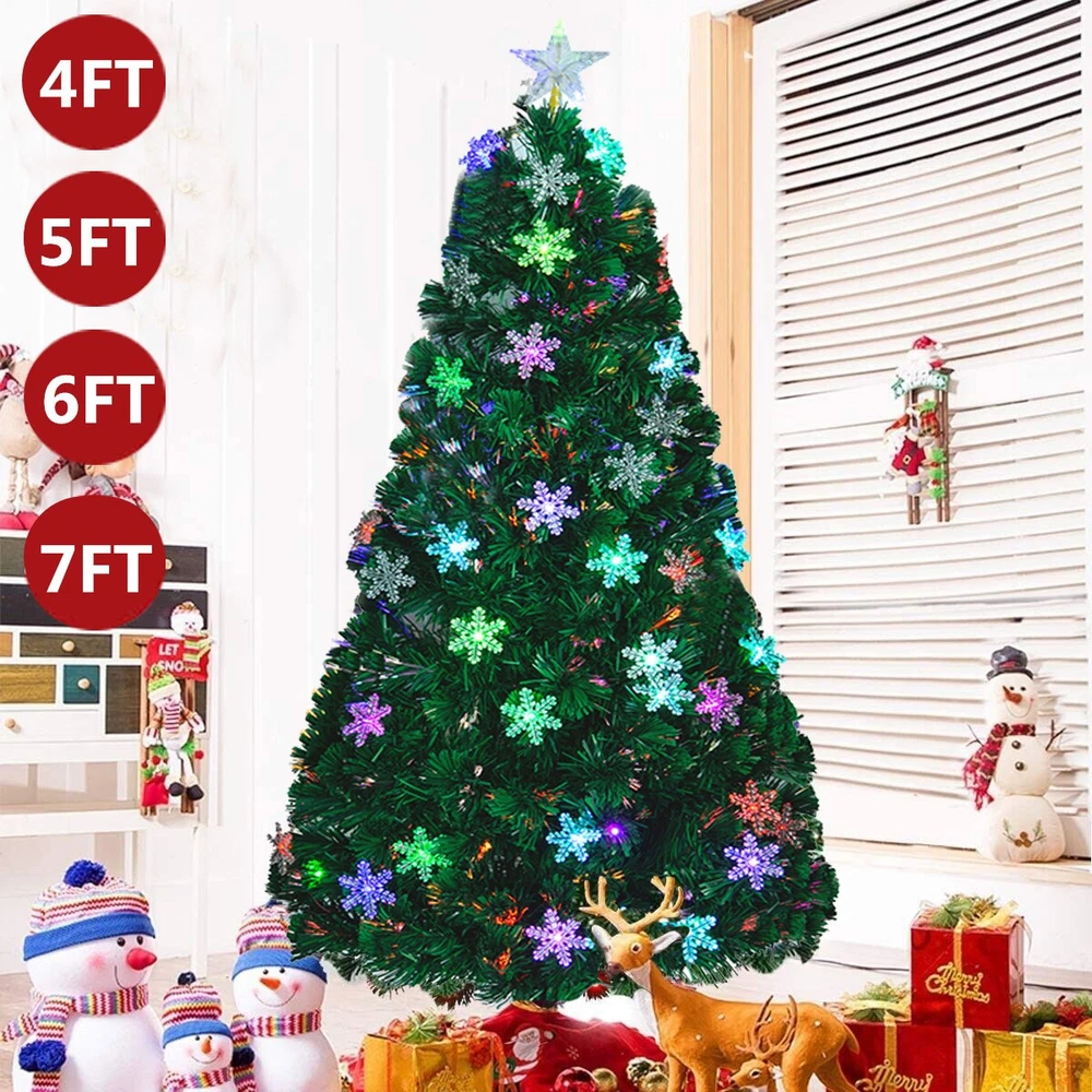 Artificial Christmas Tree Pre Lit Fiber Optic / with LED Lights / Snow Flocked