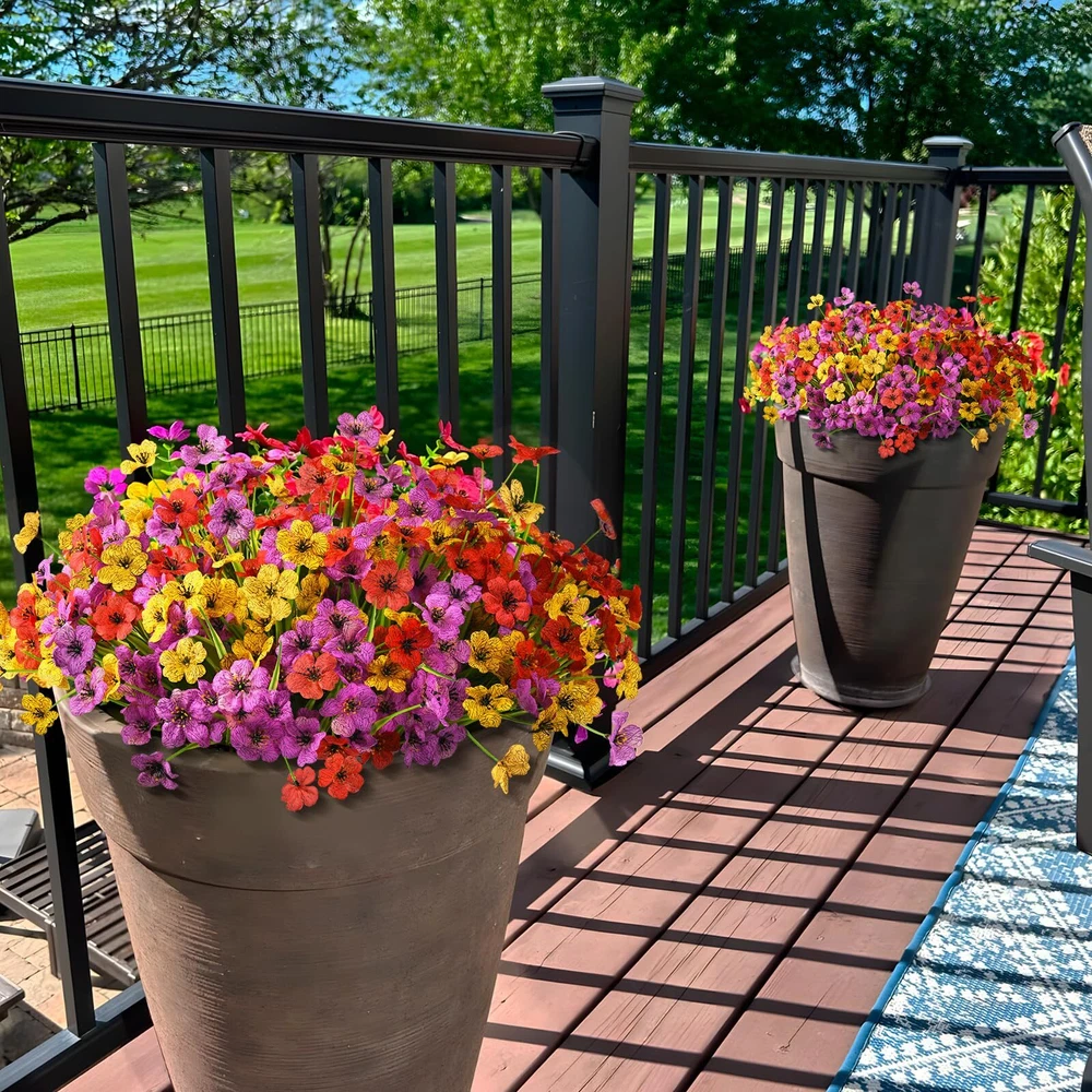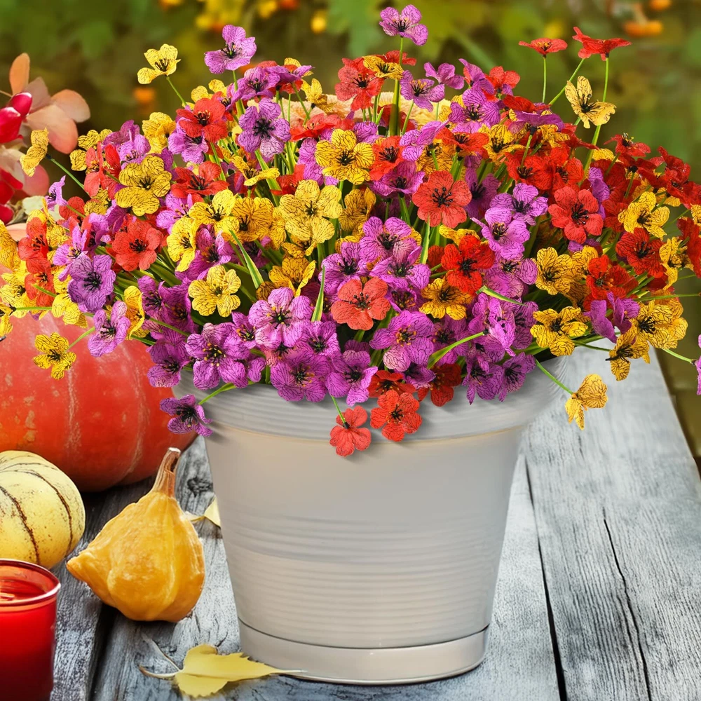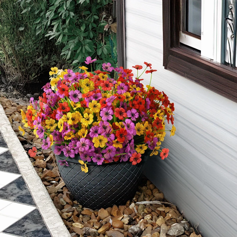 24 Bundles of Artificial Outdoor Flowers Branches:This package comprises a total of 24 bundles,featuring 8 branches each of hot red,purple,yellow daisy flowers.Colorful blooms allows for creating stunning flower arrangements and bouquets. High Quality:These artificial outdoor plants are made of High quality material,Each flower come as close to real as can be,offer true-to-life petal and foliage textures.It 's UV resistant,It will blooms all year round. Realistic Artificial Flower:These faux outdoor plants are real looking,these artificial branches exude a stylish and authentic appearance,rendering them ideal decorations for your home, garden,yard,patio,balcony.Both indoors and outdoors.A must-have for spring and summer decor. Suitable for Indoor Outdoor Decoration:These true-to-life fake outdoor daisy flowers infuse a charming and welcoming vibe into your front porch, walkway, garden, and more.Additionally, they serve as versatile decorations suitable for weddings, hotels,office, guesthouses, parties or other indoor outside place decoration, create an illusion of enlarged space. Variety of Bundle Choices:Elevate your home's ambiance with these 24 bundles of daisy flowers,colorful flowers with green leaves,There are various vibrant colors to choose,no watering needed and adjustable branches make DIY easier.