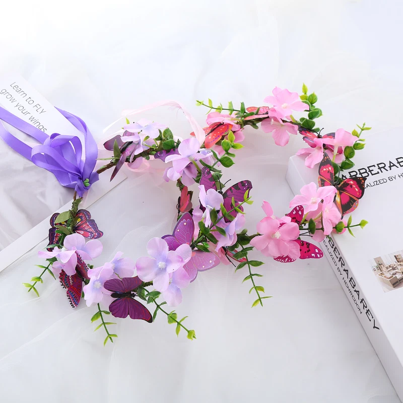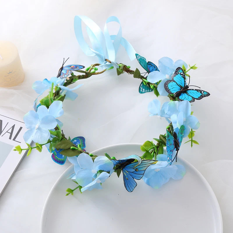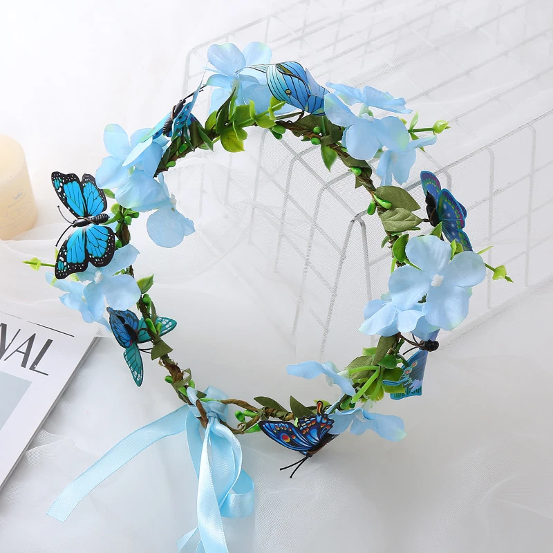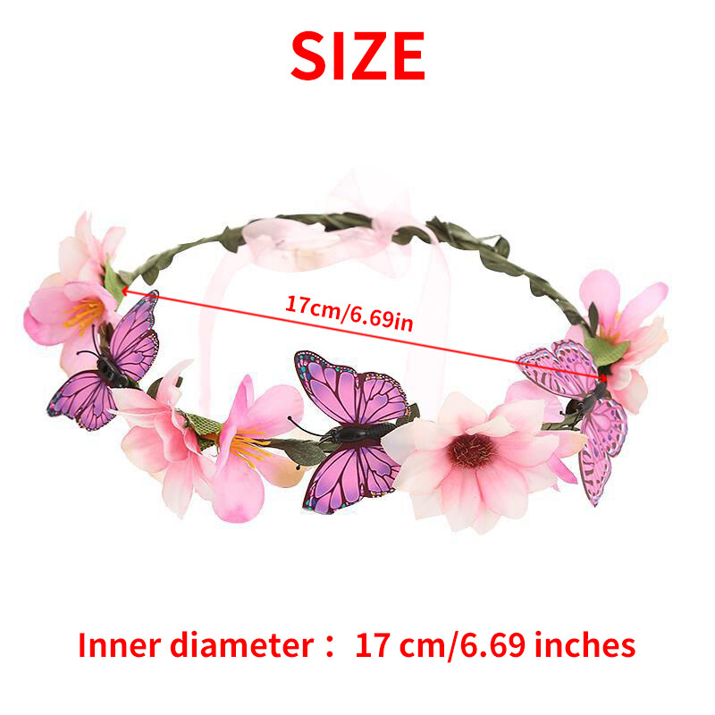 Girls Artificial Flower Headband Head Garland Hair Band Crown Wreaths Headwear Description: 100% new high quality, high style. Specifications: Material:cloth,iron Color: Blue,Pink,Purple Size:inner perimeter about 17cm/6.69inch Style: universal for women girls, bows, headbands, hair bands Package Included: 1pcs