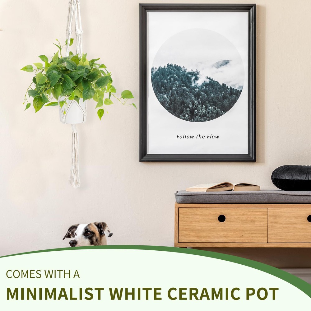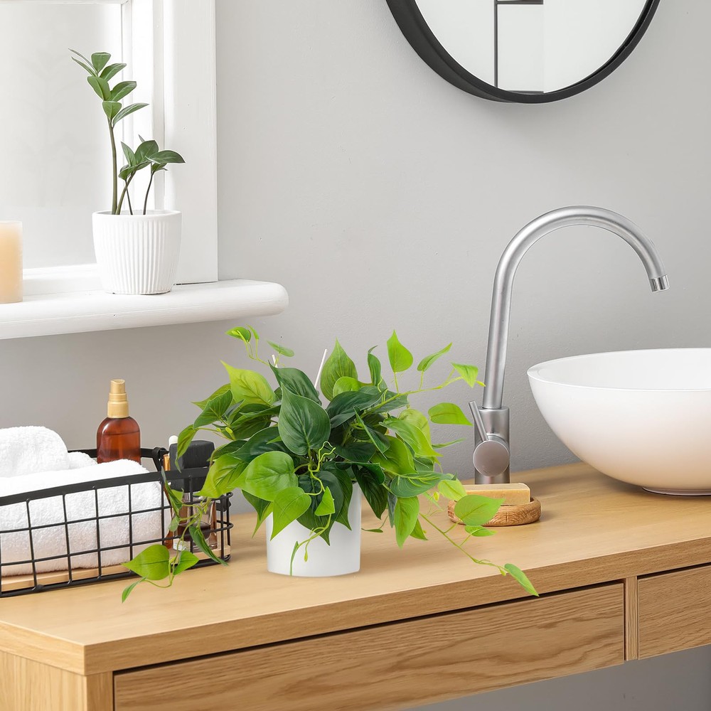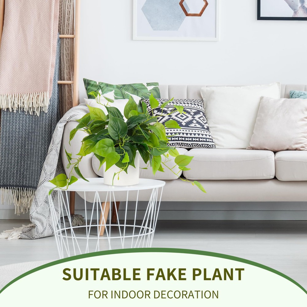 【Realistic appearance】The leaves of the fake plant have clear textures, uniform color and real shapes. The iron wire inside the rhizome allows it to be bent into any shape, and part of the rhizome and leaves are detachable. You can adjust the shape of the plant according to your personal preference to make it look more real and vivid. 【Easy to care】Artificial plants will not wilt, fade or be damaged. No watering and frequent maintenance are required, as long as the dust on the surface is wiped occasionally. Green potted plants can make your room full of life throughout the year, so it is very suitable for modern people who are busy at work. 【Sustained stuffs】The leaves of the green potted plants are made of good quality plastic, which is strong and sustained and not easily get damaged. There is an iron wire inside the rhizome, which can be bent at will. The white pot is made of ceramic, stylish and strong, and it is the best choice for home decoration. 【Multi-purpose fake plant】Small artificial potted plants are suitable plants for indoor decoration. Place it in the living room, bedroom, dining room, bathroom or anywhere, it can inject a touch of green into your room. You can also use plant hangers to hang these potted plants. The white flower pots can be perfectly matched with bohemian-style cotton rope plant hangers. 【All-match interior decoration】 The pure white ceramic flower pots have a minimalist style and can match almost all patterns, colors and decoration styles. Not only can it bring full vitality to your home, it can also be used as an office plant, allowing you to enjoy the freshness and beauty of green plants after work.