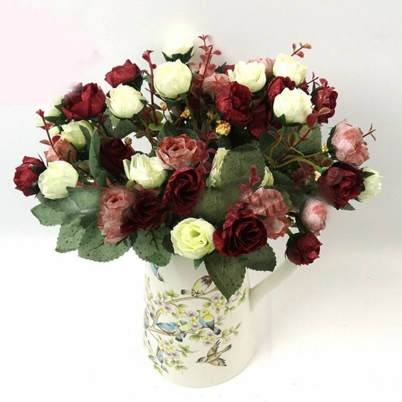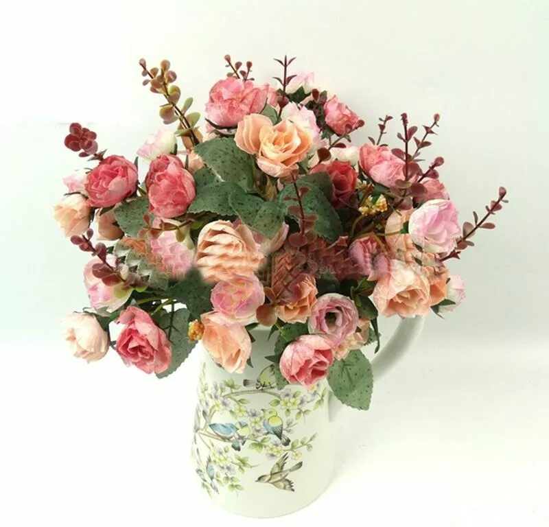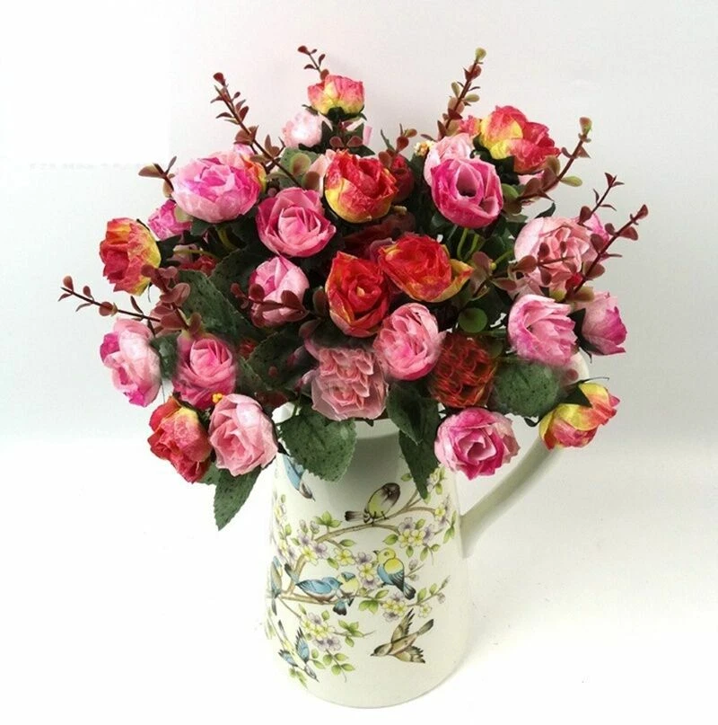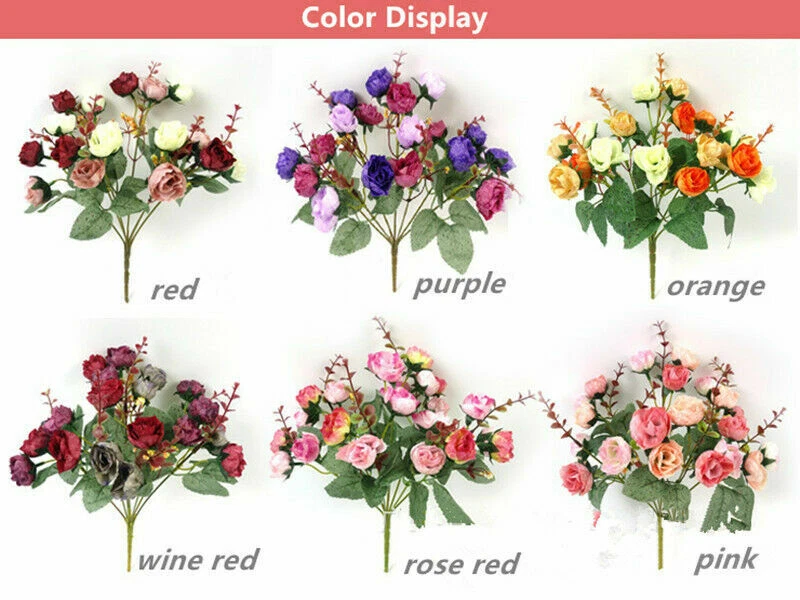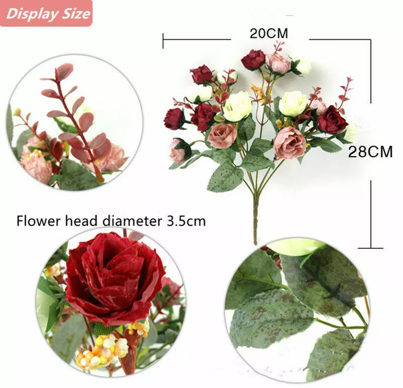 Features: 100% brand new and high quality. Made of high quality material, durable and practical to use. Add artistic flavor to the living environment and make the living environment more flavorful Perfect home decoration, floor, garden, restaurant, hotel, shop, wedding, etc., any place you want to decorate. It can be placed in a vase separately, it can be equipped with ceramic vases, rattan vases, glass vases, wooden vases, it can be combined with other hay, or it can be packaged with other flowers and plants. The perfect gift for friends and family. Warm reminder: If you receive a squeeze, leave it for a while to restore the original appearance. Specifications: This is the small size flower, please check the size before ordering! 100% brand new and high quality Type: Artificial Rose Flower Material: Silk Cloth, Plastic, Iron Wire Quantity: 15-17 Heads/bouquet Features: Handmade Fake Rose, Wedding Party Decoration Flower Height : 28cm/11" (Approx.) Flower Diameter: 3.5cm/1.4" (Approx.) Package Contents: 1 bunch with 15-17 heads artificial flowers (For your reference, there are 3-5 bunches of flowers inserted in the bottle as the picture shows)
