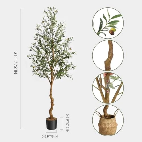 Return Policy Fast Delivery Trusted seller Artificial Olive Tree 6FT(72in) Tall Faux Silk Olive Trees with Backet for Home Office Living Room Decor Indoor Fake Potted Tree with Handmade Seagrass Basket and Lifelike Fruits Product Description 【Realistic Olive Tree】This 6FT artificial olive tree features a lifelike PE trunk, giving it a sculptural appearance, complemented by lifelike leaves and fruits for an artistic and authentic look. The single trunk splits into several branches, adorned with dozens of olives made of rubber fabric. The clear texture of the olive leaves and vibrant colors make this faux tree an ideal home and office decoration, creating a tropical atmosp in your living environment. 【Easy to Assemble】This pre-installed olive tree is easy to assemble; simply follow the directional arrows to create a complete olive tree. The branches are internally equipped with sturdy metal wires, allowing you to adjust the branches to your preferred shape without easy breakage. Even the leaves can be adjusted in height according to your preference, allowing you to have a unique and striking olive tree in your home. 【High-Quality and Sturdy】This artificial tree is made of durable high-quality silk material for a realistic touch, waterproof, and environmentally friendly. The black nursery pot is made of hard PP material and injected with cement to prevent children or pets from knocking it over. We recommend placing it in a larger decorative pot to enhance the faux tree's appearance. 【Safe Materials】All materials used in our artificial plants have been flame-retardant treated, ensuring safety even when placed in sealed environments. With multiple layers of packaging and shipping in cardboard boxes, this artificial plant will retain its height, color, and shape for years without the need for trimming or shaping, ensuring it remains aesthetically pleg and creates a tropical/natural atmosp in your living environment. 【Ideal Gift】Our artificial plants are suitable for various occasions, including offices, hotels, malls, homes, living rooms, bedrooms, courtyards, dining areas, entrances, and outdoor spaces. They are perfect for filling empty corners and low-light areas and serve as ideal gifts for friends or family for Christmas, Thanksgiving, housewarming parties, birthdays, and Valentine's Day. Shipping Returns Payment Shipping Shipping is FREE to all addresses other than APO/PO boxes in the lower 48 states. All our stock ships from US-based warehouses. Shipped via USPS or UPS (depending on location and package weight) Unless stated otherwise, all orders will ship within 24-72 hours of your payment being processed. Check our feedback to see the great reviews of FAST shipping we offer. Returns Seller does not accept returns Payment We currently accept payment via eBay managed payments only. Once payment is cleared, we will dispatch your shipment within 1-3 business days. Please refer to the "Shipping" tab for more information regarding shipping speed to your destination.