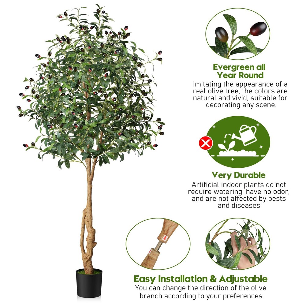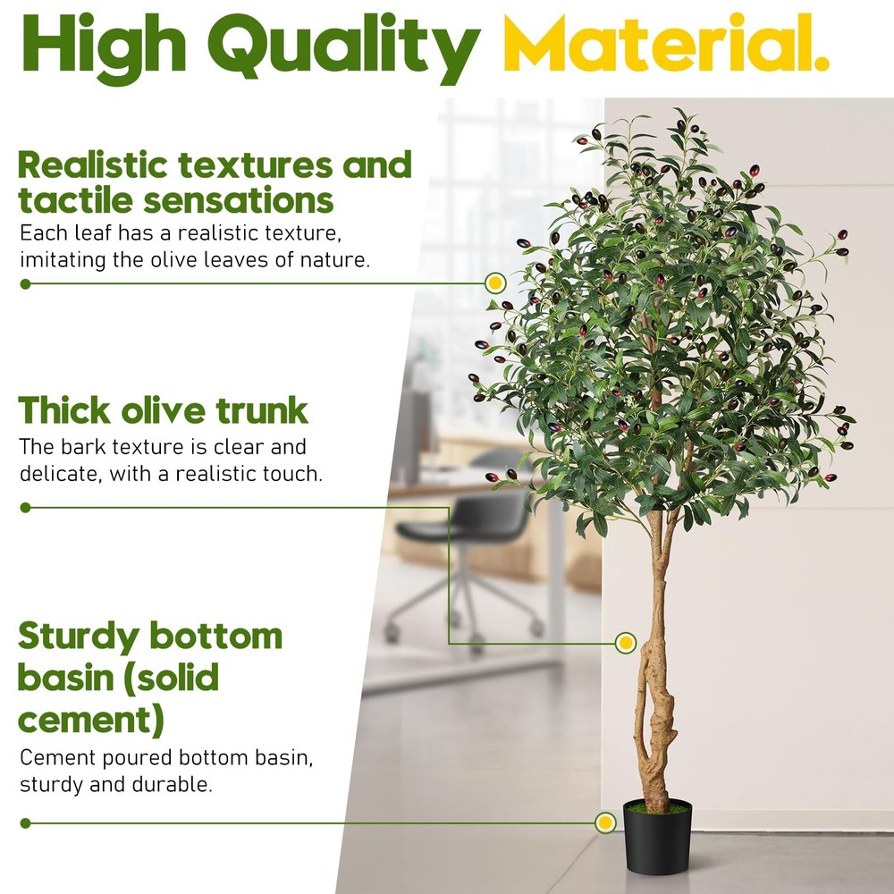 The following are the keywords for the product: tall fake plants;organic modern home decorscandinavian home decor;silk plants for home decor indoor;artificial trees for outdoors;matas artificial para sala;neutral bedroom decor;modern organic home decor;fake tall plant;indoor artificial plants;minimalist home decor;large faux plants indoor;artificial plants indoor with pot;tall plants for living room decor;plant decor for bedroom;fake plants tall;tall faux plants indoor;fake indoor plants;modern rustic home decor;artificial indoor plants;indoor tree pot;indoor plants artificial;house plants artificial;tall indoor plant;plant decor for living room;living room plant;big plants for living room decor;pot for olive tree indoor;live olive tree;tree pot indoor;fake indo or tree;traditional home decor;olive tree artificial;indoor artificial trees;olive plant artificial indoor;fake indoor plant;faux tree outdoor;living room plant decor;6ft artificial plants indoor;fake outdoor tree;artificial plants indoor 6 feet;tall faux plant;planter for olive tree indoor;home staging items;fake tree branches;live olive tree indoor;tall trees artificial indoor;foyer decor for entryway;trending home decor 2024;artificial plants for home decor indoor;artificial trees that look real;olive tree with pot;clearance artificial trees;plant for living room;indoor fake plants;faux indoor plants;fake plant large;tall floor plant Lifelike Tall Faux Plants: If you desire to bring nature into your home, our (6ft) tall olive tree is an excellent choice. It features 1224 silk leaves and 68 plump fruits which make the tree have a realistic look, creating an impression of lushness. More Stable: To ensure that each olive tree stands tall and straight, we have designed the trunk to be thicker(2.4in). Additionally, the plastic basin is reinforced and widen (5.9x6.7in) with cement for unparalleled strength and stability. Easy to Assemble: After receiving the artificial olive tree, you need a simple assembly: you can bend the branches, freely arrange the olive leaves, and adjust the shape of the tree to suit your preferences. After placing it properly, anyone who sees it will exclaim at its highly realistic design. Designed For Life: Choose our olive tree, and you will have more time of your own. Because fake trees do not require watering, fertilizing, or pruning; The most important thing is that artificial trees do not involve deforestation and do not require sacrificing the natural environment. Reassuring Use: Our artificial olive tree indoor tall are odorless, so you don't have to worry, making it an excellent gift choice for families with children and pets.