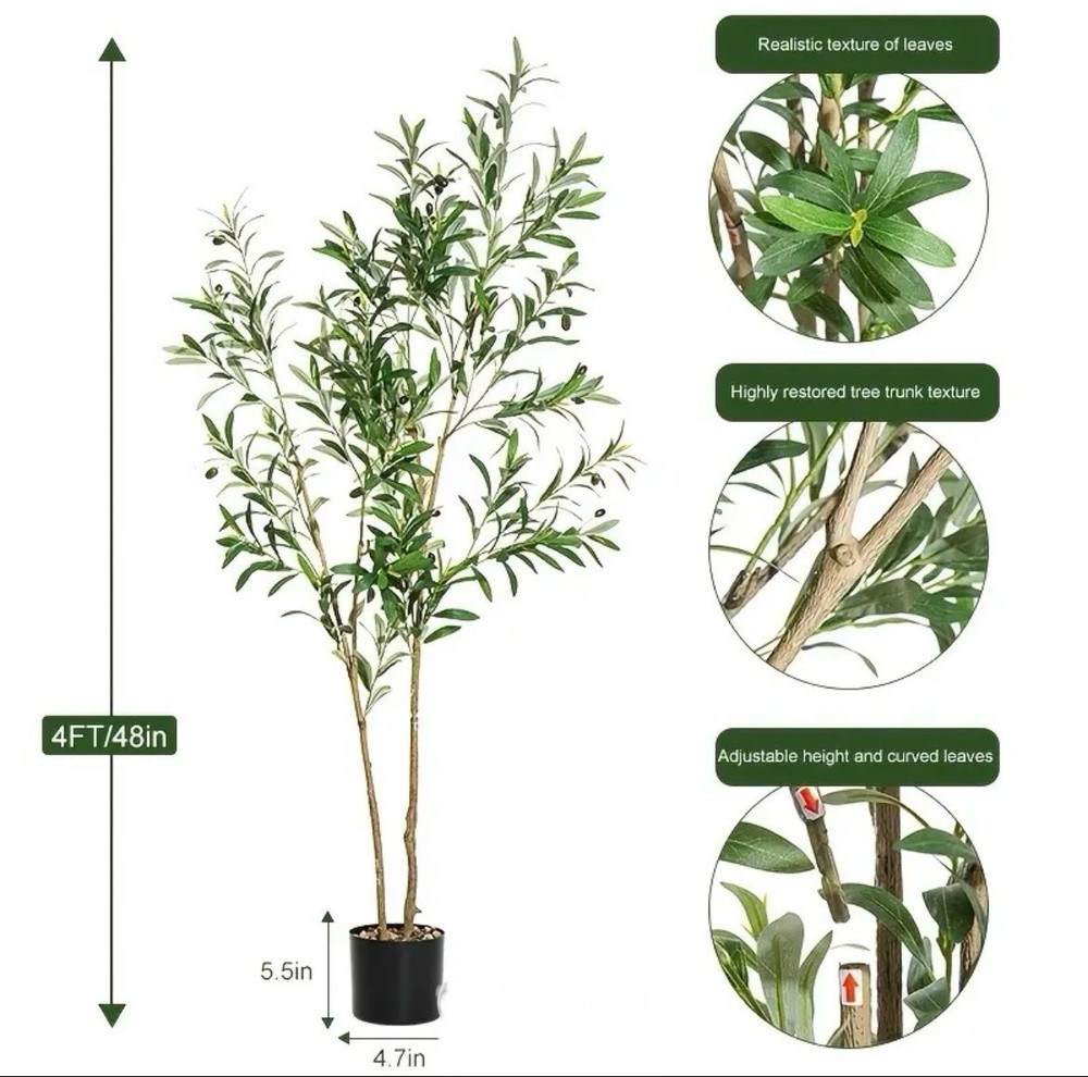 artificial olive tree decorative potted plant, simulated olive leaf, suitable for outdoor maintenance free decoration, spring, summer, doorstep, living room photography, 4 ft