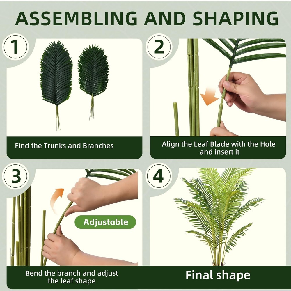 Artificial Palm Tree Indoor 6ft with Realistic Leaves and Adjustable Branches and 15 Trunks, Faux Plants Indoor Tall - Ideal for Home Decor in Living Rooms, Offices, and Bedrooms (6FT Palm Tree) Product Details Color: 6ft Palm Tree Brand: HZXGCP MPN: Palm Tree 2025 UPC: Does not apply EAN: Does not apply Brand: HZXGCP Product Dimensions: 20"D x 20"W x 72"H Color: 6ft Palm Tree Material: Plastic Item Weight: 12 Pounds Item Package Quantity: 1 Recommended Uses For Product: Indoor Occasion: Birthday, Housewarming, Thanksgiving Special Feature: Bendable Branch Seasons: All Seasons Brand: HZXGCP Product Dimensions: 20"D x 20"W x 72"H Color: 6ft Palm Tree Material: Plastic Item Weight: 12 Pounds Item Package Quantity: 1 Recommended Uses For Product: Indoor Occasion: Birthday, Housewarming, Thanksgiving Special Feature: Bendable Branch Seasons: All Seasons Tree Type: Palm Base Type: Stand Plant or Animal Product Type: Palm Built-in Light: No Light Color: White Included Components: Pot Package Information: Pot Number of Items: 1 Manufacturer: HZXGCP Number of Packs: 1 Item Weight: 12 pounds Item model number: Palm Tree 2025 Date First Available: August 5, 2024 Realistic Tropical Artificial TreeFaux palm tree indoor are all selected from nature,this palm tree leaves are slender and smooth,like feathers in appearance, and the petiole is slightly curved. its leaves can be evergreen all year round,help you feeling romance and beauty of nature without leaving home. Four Size Artificial Palm TreeThere are 4ft5ft 6ftand 7ft fake palm tree for you to choose,the 4 ft has 9 realistic leaves ,the 5 ft has 12 realistic leaves, and the 6ft has 15 realistic leaves. after you receive, you need to simple assembly, Faux Palm tree have strong internal metal wires, so you can adjust the trunk to the shape as you like without worrying about the trunk breaking. Safe MaterialsThis artificial palm tree is made of durable and premium silk material (real touch, waterproof, eco-friendly and harmless). The base is made of hard PP material with cement poured inside, which prevents children and pets from knocking it down. All materials are flame retardant treated and TUV certified, which is safe and secure. Easy to maintainOne of the biggest advantages of faux tree and real tree is that they are very simple and worry-free to maintain. there is no need to water the tree, trim it, and it does not require sunlight. it can always maintain its perfect appearance by simply wiping the dust. Practical and Thoughtful GiftYou can definitely give this palm tree as a gift to your friends ,Ideal decor for a variety of spaces, this fake palm tree is perfect for decorating living rooms, bedrooms, reading rooms, dining rooms and offices, and is also perfect for entryways, patios and commercial locations such as bookstores and coffee shops. Note(Decorative pot in picture is NOT included.)If you have any questions during use, you can contact us at any time. We will solve your problem as soon as possible.