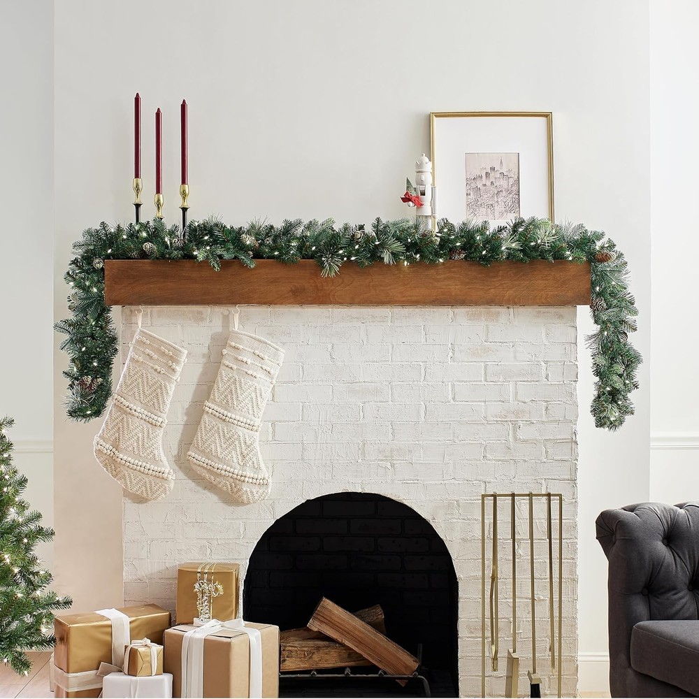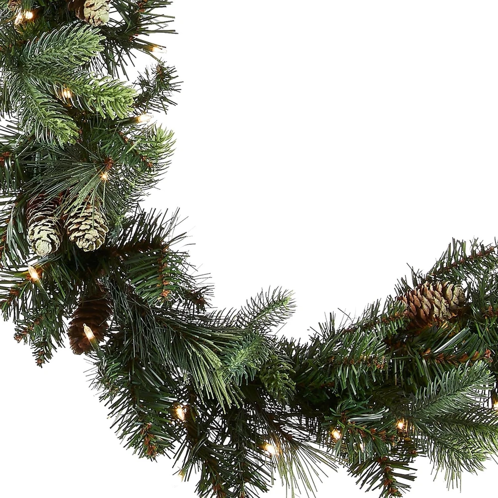 Artificial Pine Garland 9ft Pre-Lit Christmas Decor with Pinecones & 100 LEDs