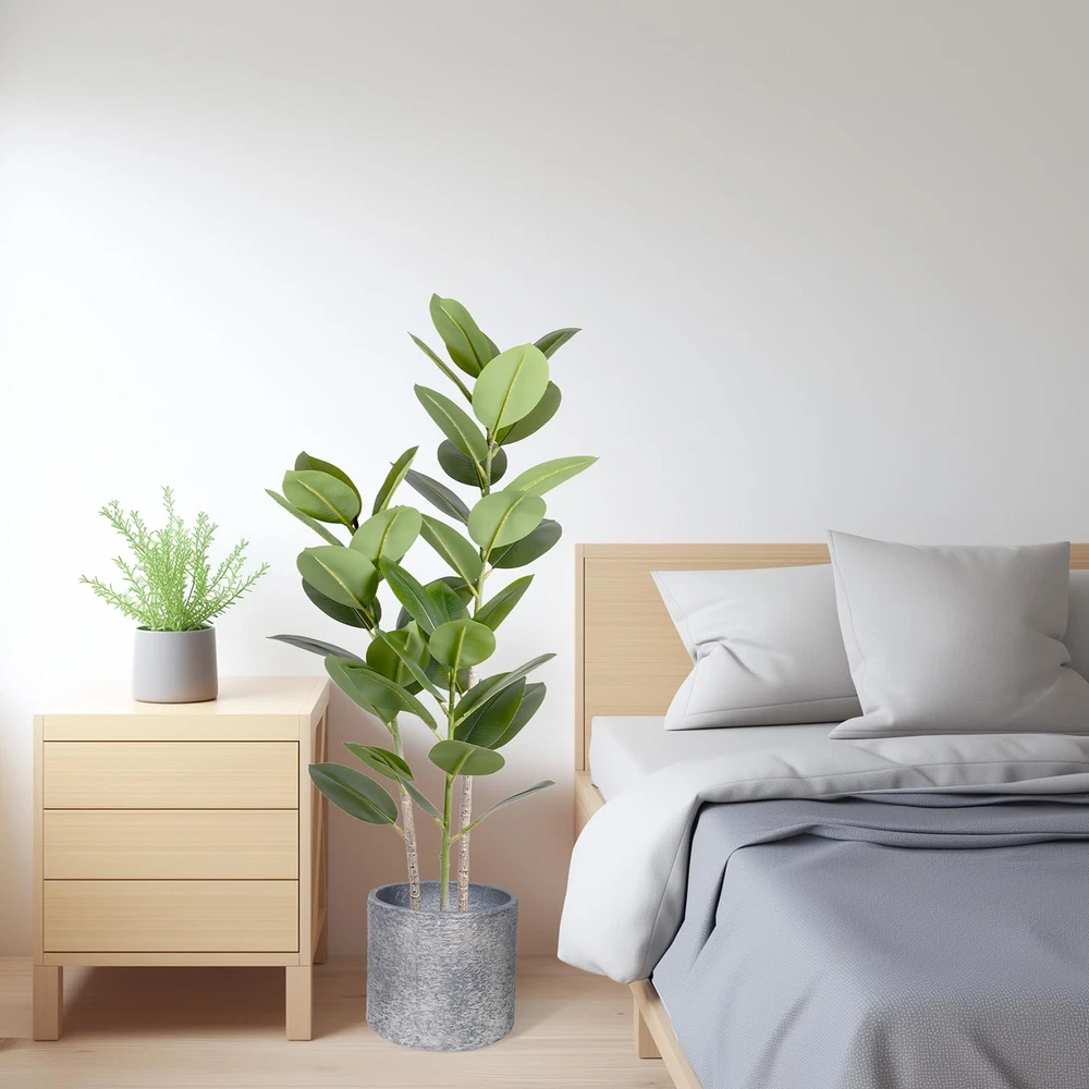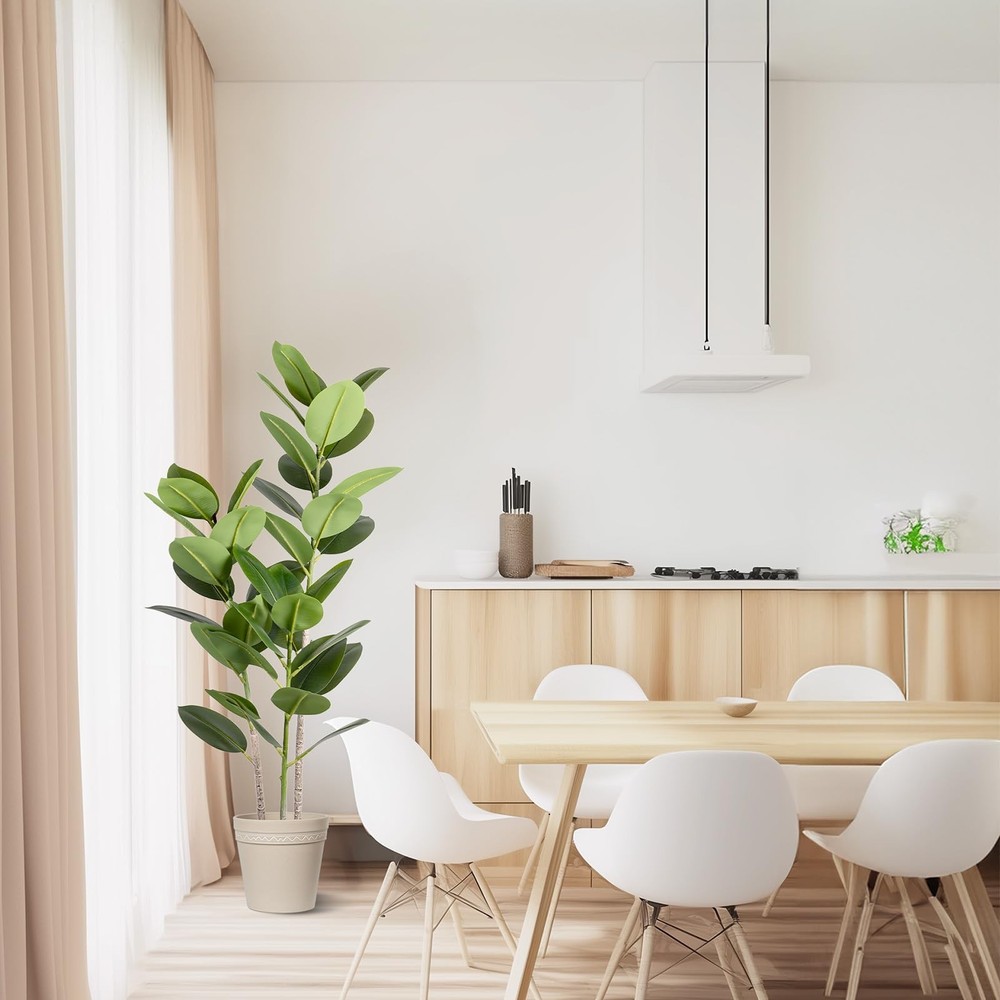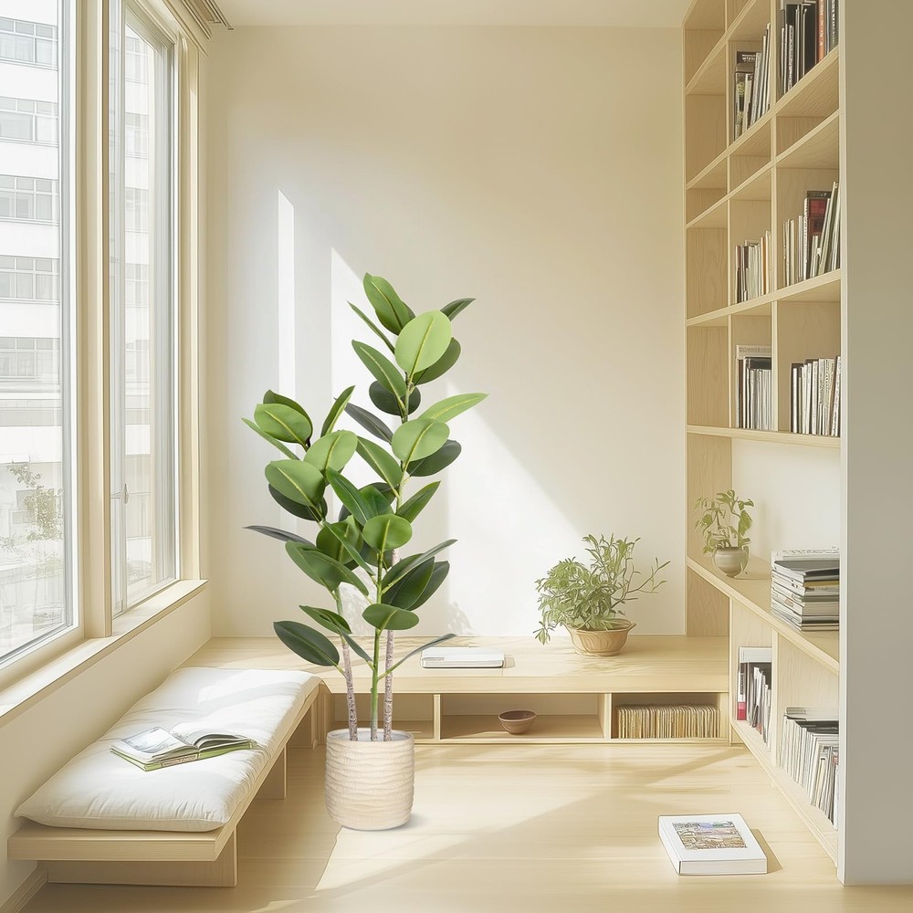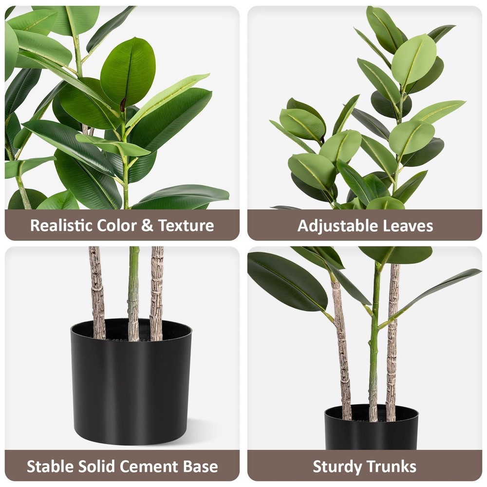 1 Premium Quality Construction: Carefully crafted to mimic the appearance of a real live rubber tree plant Stay Green All Year Round: Artificial trees will not wither because of the changes of seasons Stable & Sturdy: This faux silk tree is made of premium silk, polyester and soft metal wire, stable and sturdy Indoor & Outdoor Decor: Standing 4ft tall from the pot bottom to the top leaves, this artificial rubber tree is a perfect room decor piece Simple Installation: No installation is required, you just need to simply adjust the direction of the tree