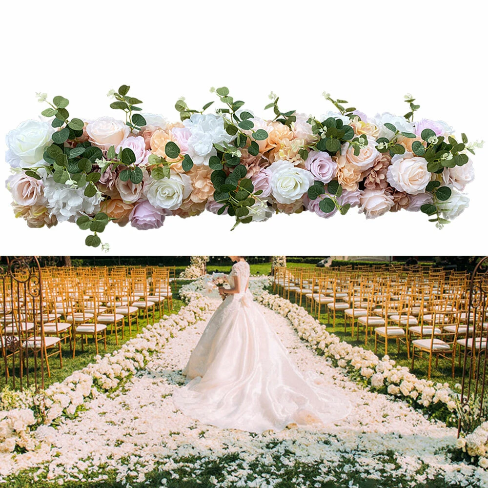 Artificial Silk Flower Row Panel Wedding Draping Floral Garland Backdrop 100cm