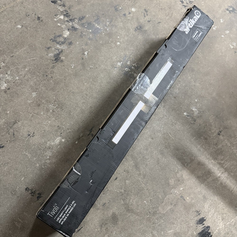This is a NEW OPEN BOX item. Box opened for part check and testing. Light works as it should. Upgrade your bathroom lighting with the sleek sophistication of the Tivoli LED Wall Light . Designed with modern minimalism in mind, this fixture offers clean lines, a bold matte black finish, and a customizable glow—perfect for today’s stylish bathrooms or vanity setups. Whether you're applying makeup, relaxing in a warm bath, or getting ready for the day, the Tivoli lets you create the perfect atmosphere. Its integrated 16W LED system delivers 1300 lumens of bright, energy-efficient light—no bulbs needed and no replacements for up to 50,000 hours . Choose from five adjustable color temperatures between 2700K and 5000K to match your mood or task. Product Features: Energy-Efficient LED Lighting : 1300 lumens with just 16 watts of power Adjustable Color Temperatures : Switch between 2700K (warm white) to 5000K (daylight) Modern Design : Matte black finish with clean, contemporary lines Built-In Dimmable Functionality : Compatible with LED dimmers for adjustable brightness Long-Lasting Performance : Maintenance-free lighting with a 50,000-hour lifespan Damp Rated : Ideal for bathrooms and humid environments Easy DIY Installation : Includes mounting hardware, instruction manual, and gloves for clean handling We take great care to inspect all items and ensure they are accurately described. Should you have any issues with your purchase, please let us know immediately. We are committed to resolving any concerns promptly and to your satisfaction. Our small business truly appreciates your patronage.