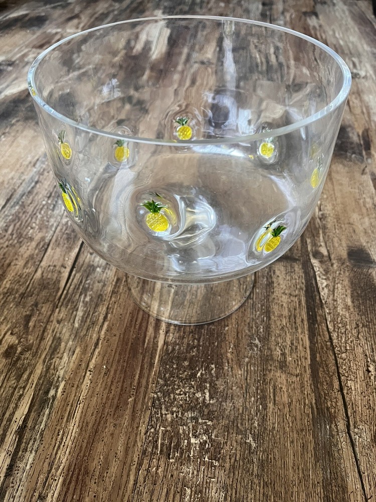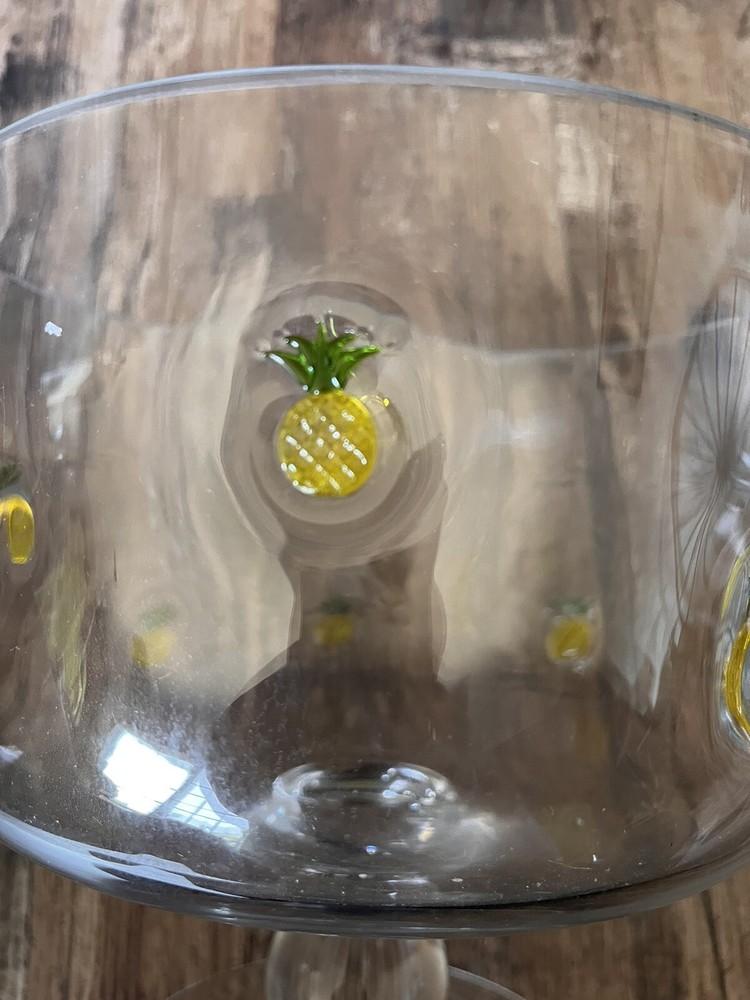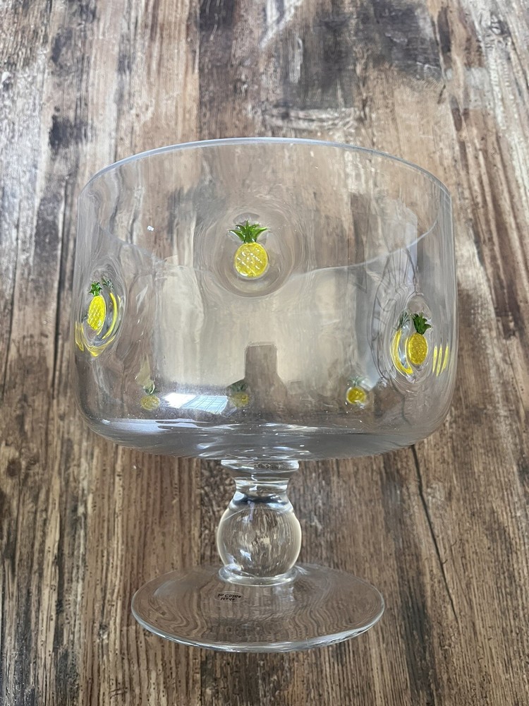Artland WELCOME PINEAPPLE Yellow Green Clear Blown Pedestal Truffle Glass Bowl See pictures for additional detail