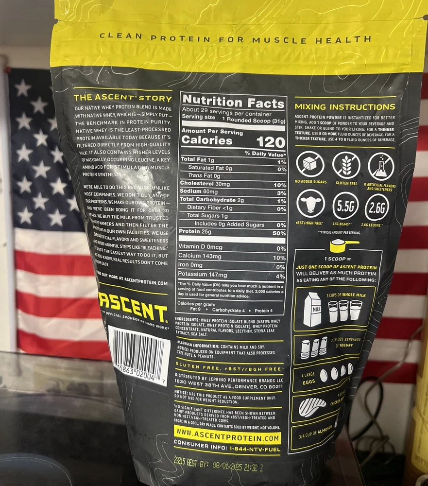 Ascent 100% Whey Native Whey Protein Blend Powder : Vanilla Bean - 2 LB (32 oz).