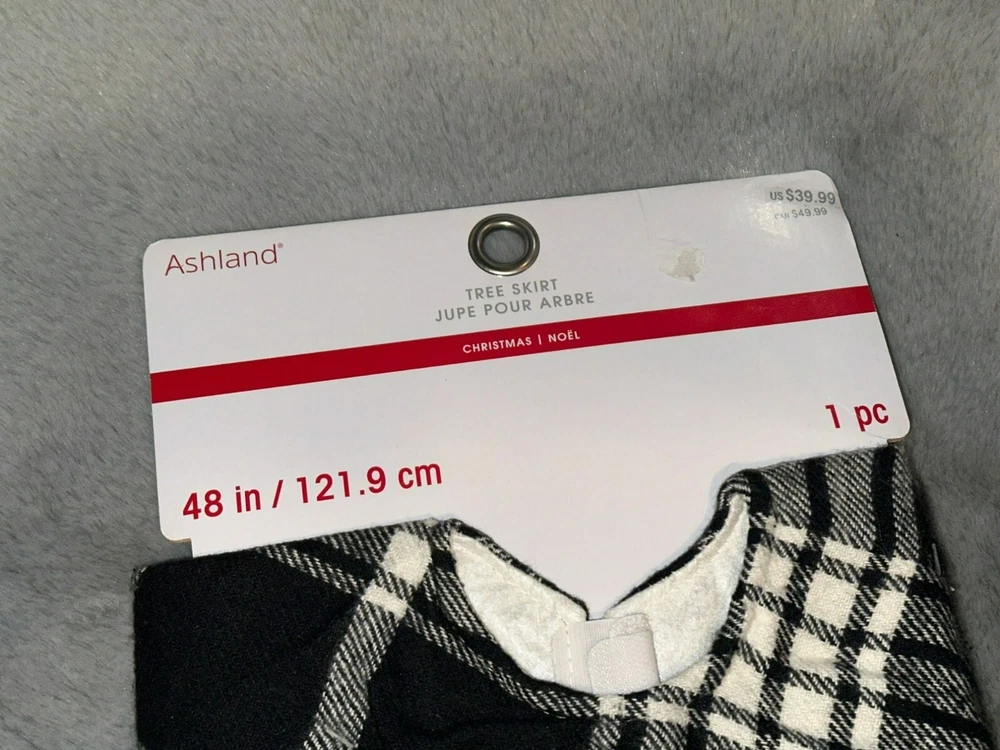 Ashland Holiday Christmas Holiday Tree Skirt Black and White Plaid Fur Trim NWT Size: 48" Condition: Brand new with tags, never used Retail Price: $39.99 Color: Multi Material: Fabric Non-smoking and pet free environment.