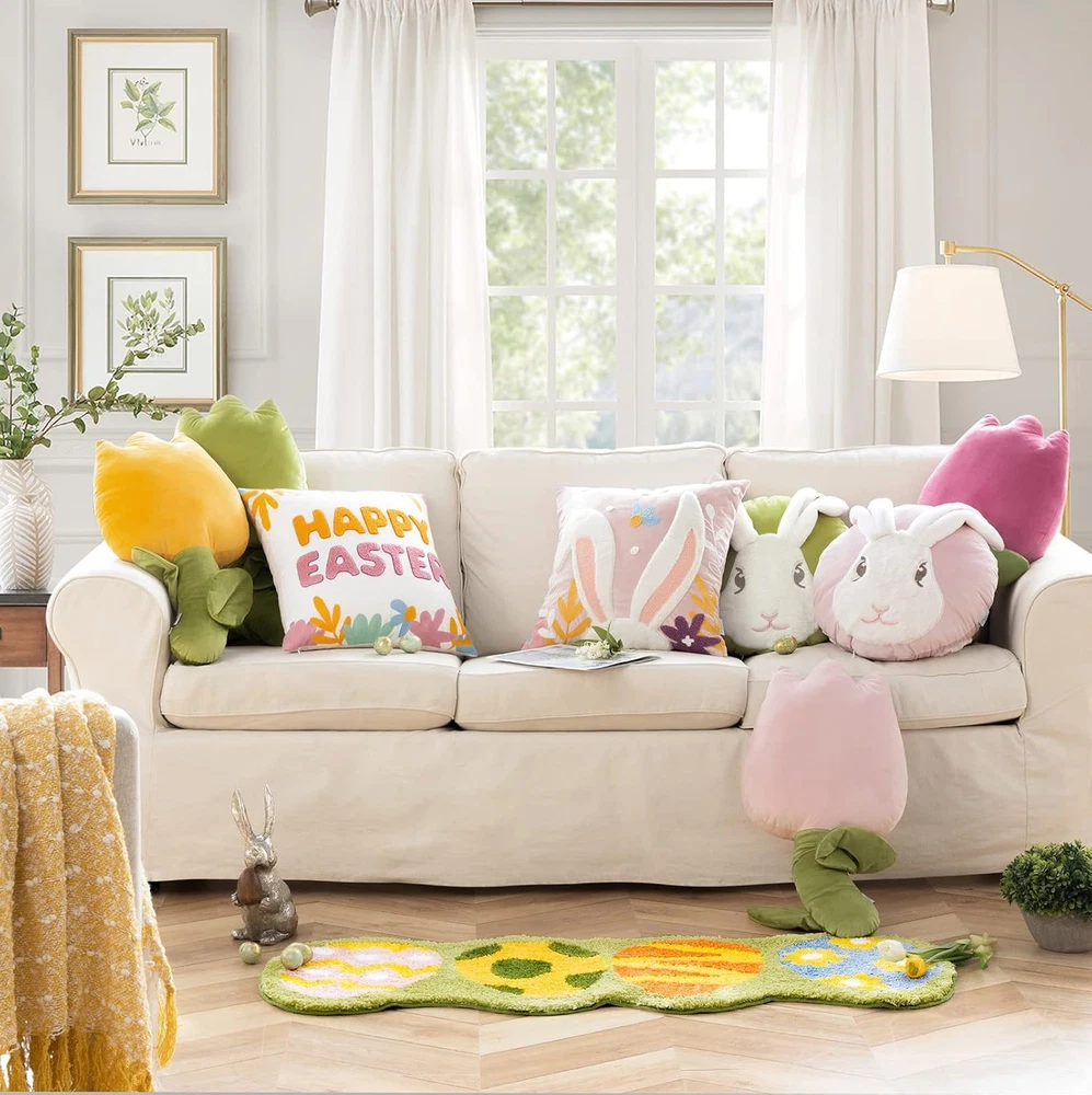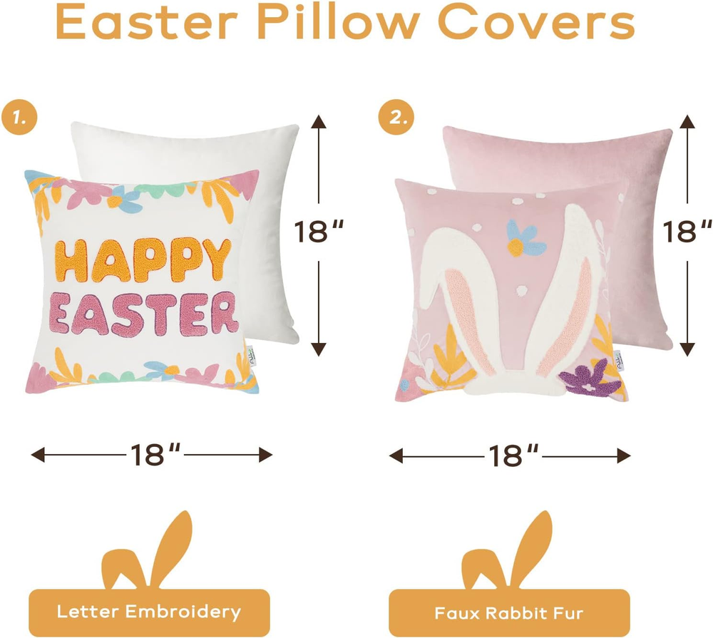 Store New Arrivals Add to Favorite View Feedback Contact Fast deliveries to the customer's home Quality customer service John Make the customers happy! Ashler Easter Bunny Pillow, Easter Decorations Pillow Covers, Rabbit Pillow Covers, Pink 18X18 in Pillow Cover, Set of 2 for Easter Home Decor, Cute Rabbit Pillowcases for Spring Easter Description Polyester 【Premium Material】The 18x18 inches pillowcases are made of high-quality velvet fabric. And the rabbit pattern is made of soft faux rabbit fur and embroidery, and every detail is carefully designed 【Unique Pillow Design】One of the two-piece pillow covers is printed with "Happy Easter" to enhance the festive atmosphere of Easter and welcome the arrival of spring. The other is printed with cute rabbits, which is lively and playful 【Hidden Zipper】The side of the bunny pillow cover has hidden zippers, which can be easily opened and closed without compromising aesthetics 【Machine Washable】The rabbit pillowcase is easy to clean. It can be hand-washed or machine-washed. Please use the delicate cycle, wash in cold water, tumble dry low, and do not iron 【Perfect Home Decor】The Easter theme bunny cushion cover is a perfect gift for family and friends, adding spring breath to home life. This throw pillow cover is suitable for a sofa, bed, chair Product Description The styles of Ashler Easter throw pillow covers are carefully designed by designers for home decoration, creating a rich Easter atmosphere, a symbol of welcoming spring, and a perfect gift for family and friends. The unique design of Easter pillow covers will bring a new look to your home life. The rabbit pillowcase is lively and playful, adding a feeling of youthful vitality in spring. The 18x18 inches two-piece pillowcase is made of high-quality velvet fabric. And the rabbit pattern is printed on it, the faux rabbit fur material is soft and smooth, and the embroidery process makes the pillowcase more three-dimensional and exquisite. The Easter theme bunny cushion cover is a perfect gift for family and friends, adding spring breath to home life. This throw pillow cover is suitable for a sofa, bed, chair More Easter Collections Add to Cart Add to Cart Add to Cart Customer Reviews 4.7 out of 5 stars 30 4.2 out of 5 stars 27 5.0 out of 5 stars 14 4.7 out of 5 stars 7 4.8 out of 5 stars 22 4.5 out of 5 stars 153 4.8 out of 5 stars 184 Price $26.99 $ 26 . 99 $27.99 $ 27 . 99 $24.99 $ 24 . 99 — — — — Material Velvet/Faux Rabbit Fur Microfiber Microfiber Velvet/Faux Rabbit Fur Velvet Polyester Polyester Size 18x18 IN/Set of 2 17x47 IN 18.2x26.5x30IN 15x15 IN 12x25.5 IN 18x18 IN/Set of 4 18x18 IN/Set of 4 Style Easter/Energetic/Cute Easter/Energetic/Cute Easter/Energetic/Cute Easter/Energetic/Cute Easter/Energetic/Cute Spring Farmhouse Spring Farmhouse Features Soft Water Absorbent & Non-Slip Water Absorbent & Non-Slip Soft Soft Soft Soft Machine Washable ✔ ✔ ✔ ✔ ✔ ✔ ✔ Item model number Square Style Modern Number of Items 2 Pattern Animal Print Country of Origin China Embellishment Faux rabbit fur and embroidery Theme Easter Number of Pieces 2 Unit Count 2.0 Count Room Type Living Room, Home Office Batteries required No Product Dimensions 18"L x 18"W Material Velvet Shape Irregular Closure Type Zipper Item Weight 12.1 ounces Occasion Home Decor Special Feature Fade Resistant Color Pink Pillow Type Throw Pillow Recommended Uses For Product Outdoors, Home Fabric Type Polyester Product Care Instructions Machine Wash ABOUT US We offer the best prices around on high quality products. Our E-store includes media such as books, movies, music and games while offering electronics, toys, sporting apparel, clothing, tools, general home, garden items and more. SHIPPING We are always working hard to ensure your package arrives as soon as possible. Please understand that some factors like weather, high postal traffic, and the performance of shipping companies are outside of our control. We offer free shipping to the lower 48 states and ship within 2 business days of payment, usually sooner. We do not accept P.O. Boxes. Please provide a physical address. For shipping outside of the continental USA, we only use eBay's Global Shipping Program. The item is shipped to KY and then sent to the rest of the world. International customers are responsible for all duties and taxes. Continue to 'check out' to calculate costs for shipping the item to your country. Messages regarding eBay's Global Shipping Program MUST be directed at eBay EXCLUSIVELY. RETURNS We offer a 30-Day Return Policy on items in which you are not completely satisfied with. You have the option of a full-refund or an exchange of the item. No returns are available on items shipped outside of the USA PAYMENT We accept PayPal. CONTACT US This page content is yet to come Please ad us to your favorite seller and visit again later Thank You CUSTOMER SATISFACTION We try our very best to make sure every customer is completely satisfied. If there's a problem, message us! We're happy to help. WE ACCEPT