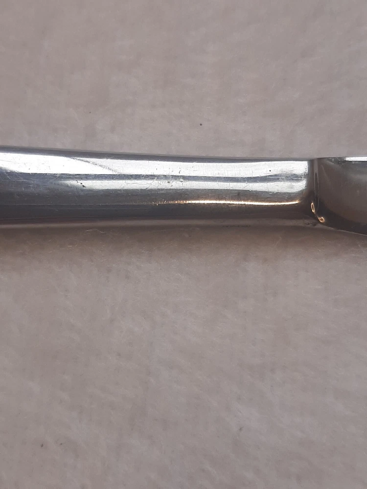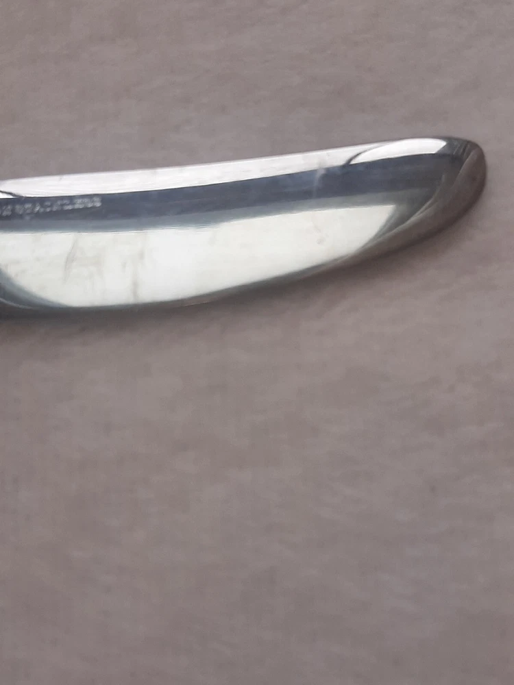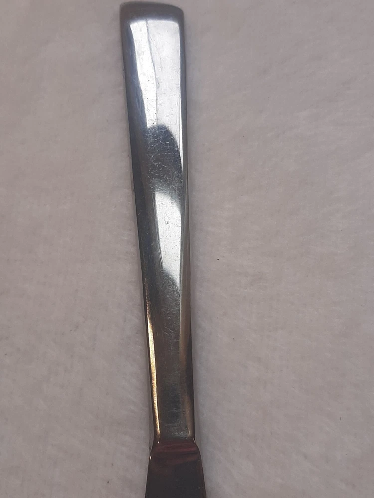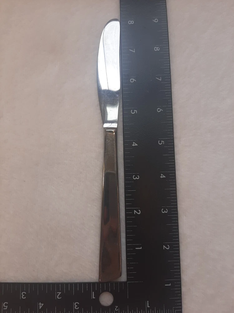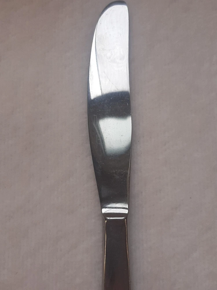 Ashton Stainless Steel Unknown Pattern Angled Tip Dinner Knife Flatware In good pre-owned condition may show signs of wear from use/handling/storage/display. Please view all pics for condition/details/flaws/issues. SOLD AS IS There is/maybe marks/spots/dirt/debris/rust please see photos 1-12, there is/maybe paint loss/sticker loss please see photos 1-12, there is lite discoloration please see photos 1-12, there are surface scratches to item please see photos 1-12, please see all photos for condition/issues/details.