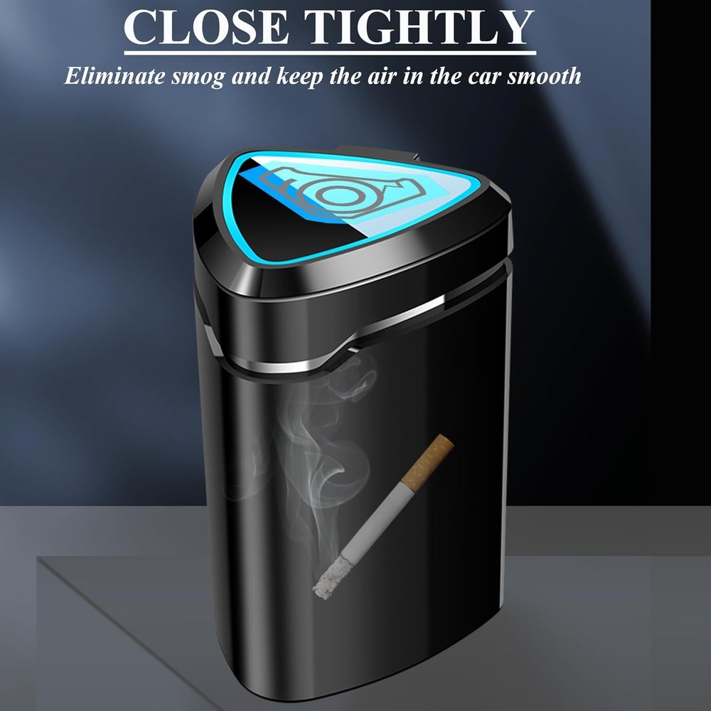 Ashtray with Lid Smell Proof, Smokeless Ashtray, Mini Car Ashtray(Rechargeable)