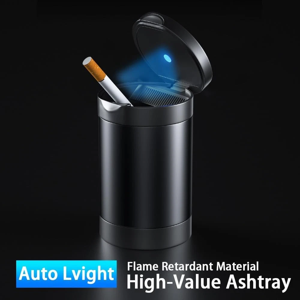 About this item Automatic LED Light: The portable ashtray with lid features a blue LED light that automatically turns on when the lid is opened, ensuring visibility in low light or dark environments. Large Capacity: With Package Dimensions of 2.75"L x 2.75"W x 4.33"H, this ash tray for cars offers ample space, not only for ash but also as a mini car trash can for small waste like crumbs, fruit peels, tissues, etc. User-Friendly Design: This car ashtray for cup holders features a wide extinguishing platform for quick cigarette extinguishing with a tap, a clip to secure the cigarette, and a lid that reduces oxygen to help the cigarette go out faster. Durable Materials: The ashtray for car is made of high-quality stainless steel and fire-resistant materials, leaving no burn marks. It is both aesthetically pleasing and durable. Easy to Clean: The top and bottom of the portable ashtray can be easily detached, allowing you to thoroughly clean it after each use. Package Dimensions: 2.75"L x 2.75"W x 4.33"H.