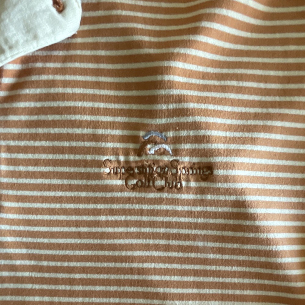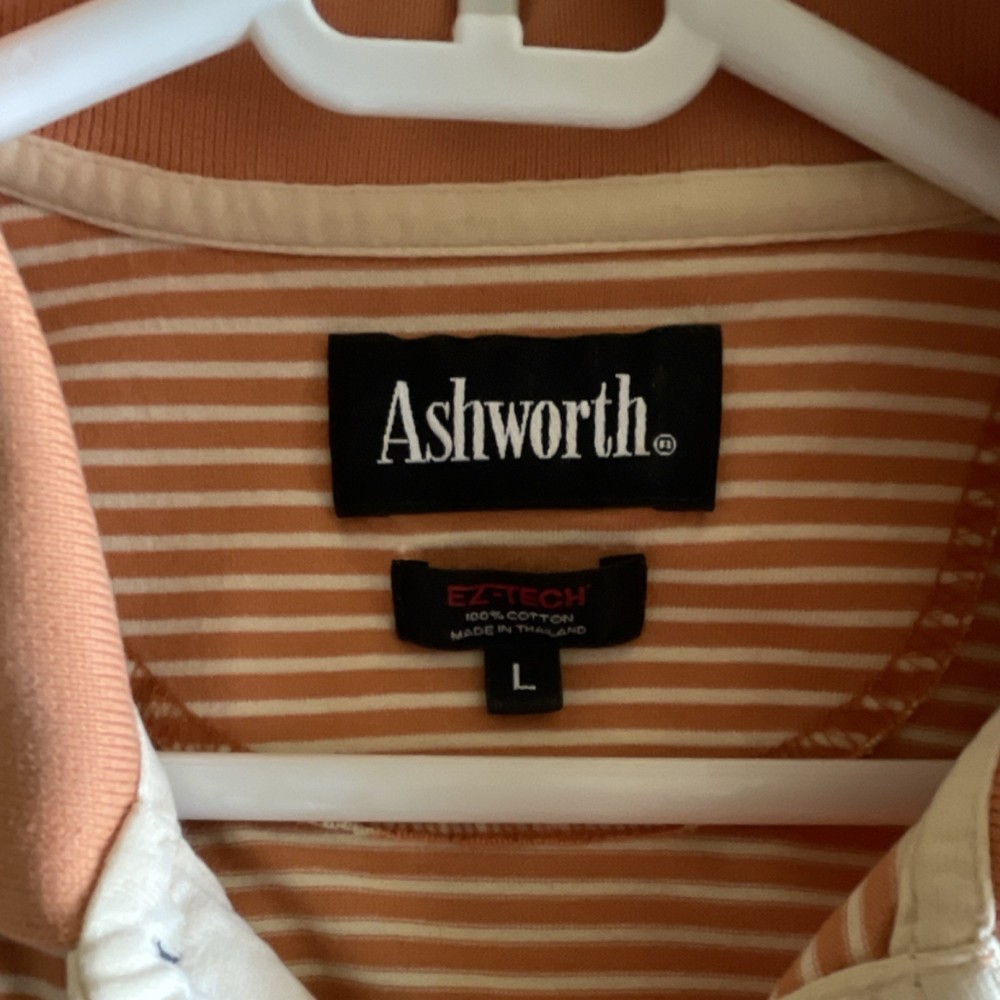 Ashworth EZ TECH Men's Peach White Striped 100% Cotton Golf Polo Shirt L