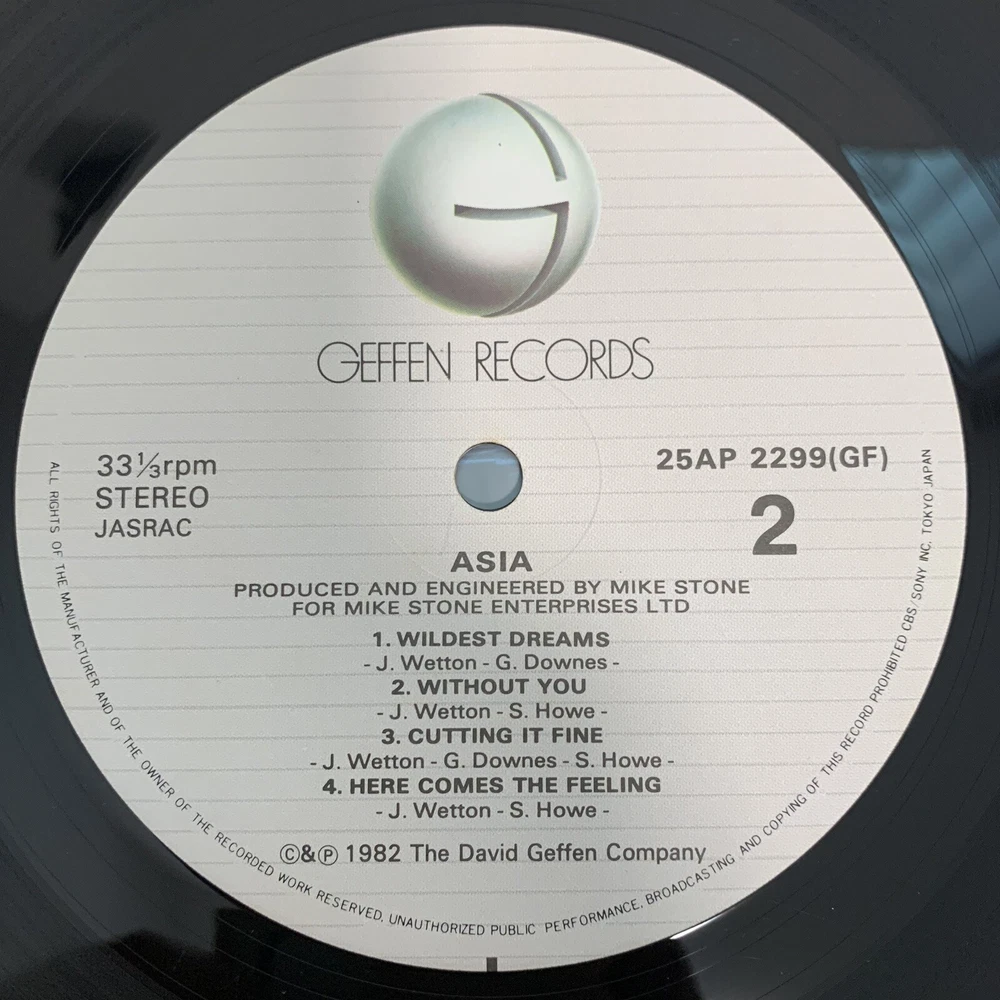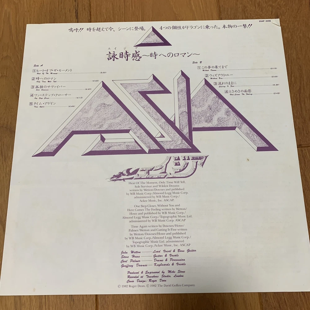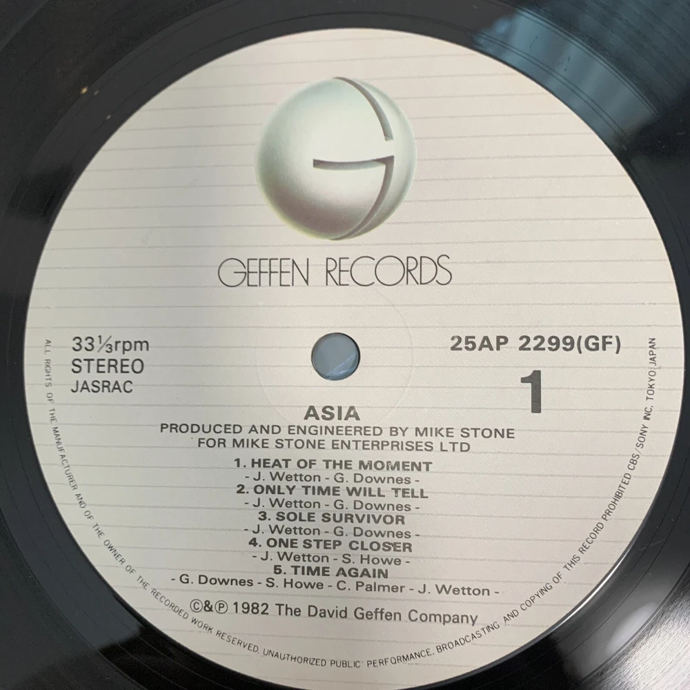 This Asia’s self-titled Japanese edition vinyl LP is a must-have for any 1980s progressive rock vinyl collector. The inlay and sleeve conditions are both very good plus (VG+), and the record grading is excellent (EX). The LP was released in 1982 under the Geffen record label, with a catalog number of 25AP 2299. This Japanese pressing edition comes with an obi and booklet inJapanese, making it a rare and valuable. Don't miss out on the chance to add this gem to your vinyl collection.