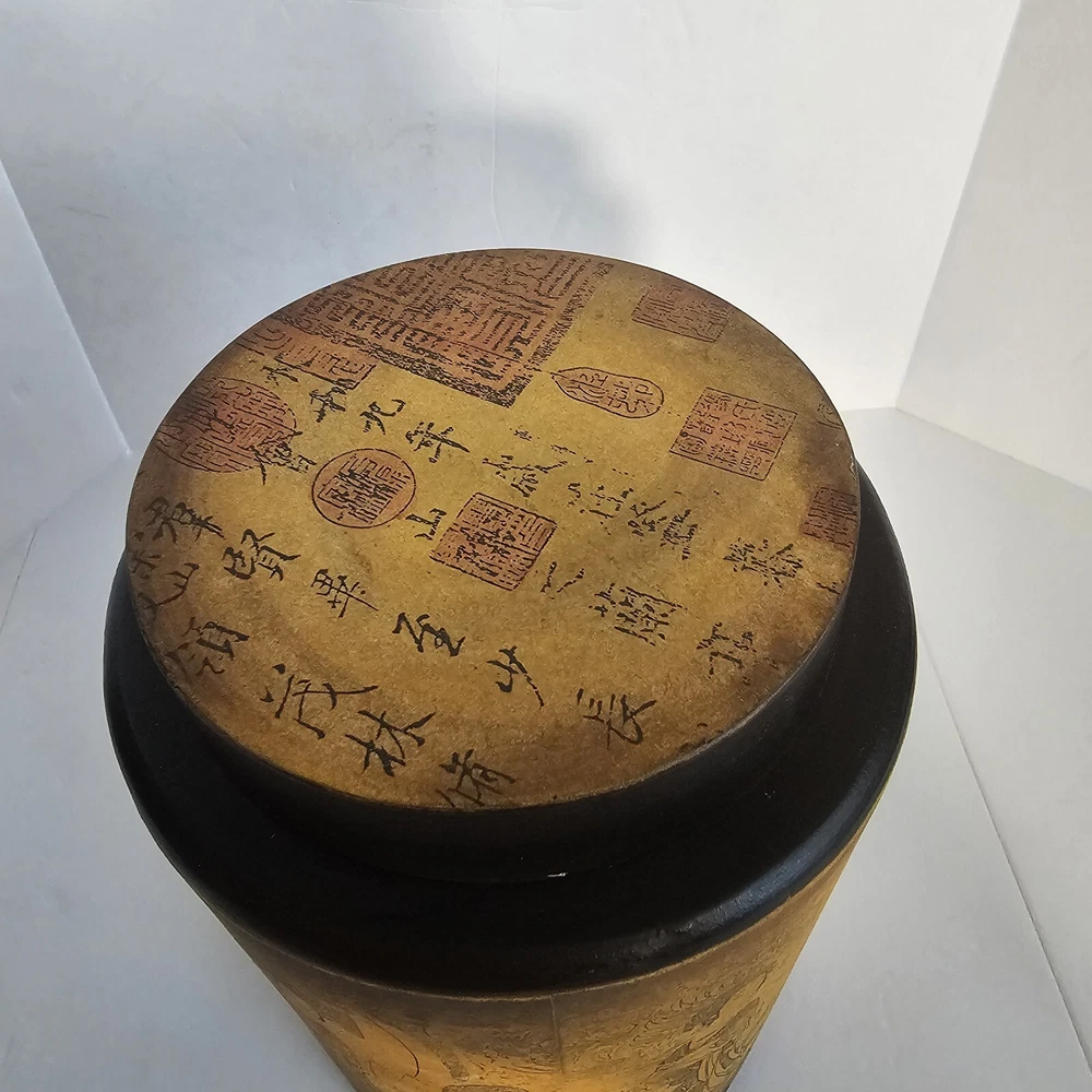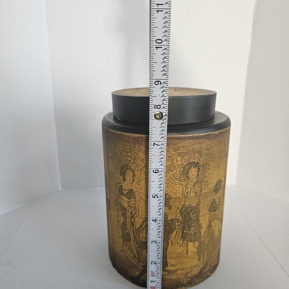 Features: With Lid Style: Asian Collection: Keepsake Boxes Item Width: 6 in Pattern: Asian Shape: Round Theme: Novelty Subject: Boxing Type: Trinket Box Size: Medium Brand: World Market Color: Multicolor Finish: Lacquered Item Height: 8 in Country/Region of Manufacture: China