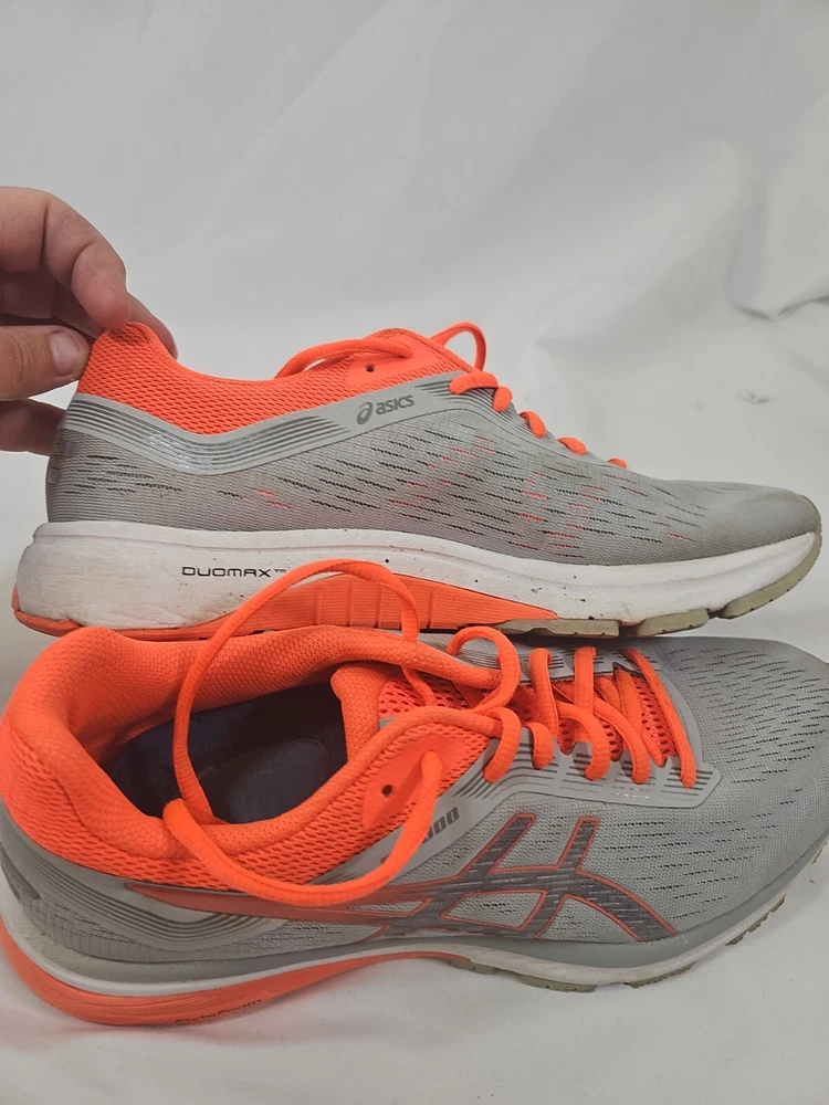 These ASICS GT-1000 sneakers are perfect for any woman looking for a comfortable and stylish shoe. With a low top shoe shaft style and a lace-up closure, these shoes are easy to wear and adjust to your liking. The pink and grey color combination adds a pop of color to any outfit. These shoes are suitable for gym training, cross-training, and running, and feature cushioned insoles made of foam for added comfort. The breathable fabric outsole material and adjustable shoe width make these shoes perfect for any foot shape or size. They are pre-owned but are still in great condition and ready to be worn by their next owner.