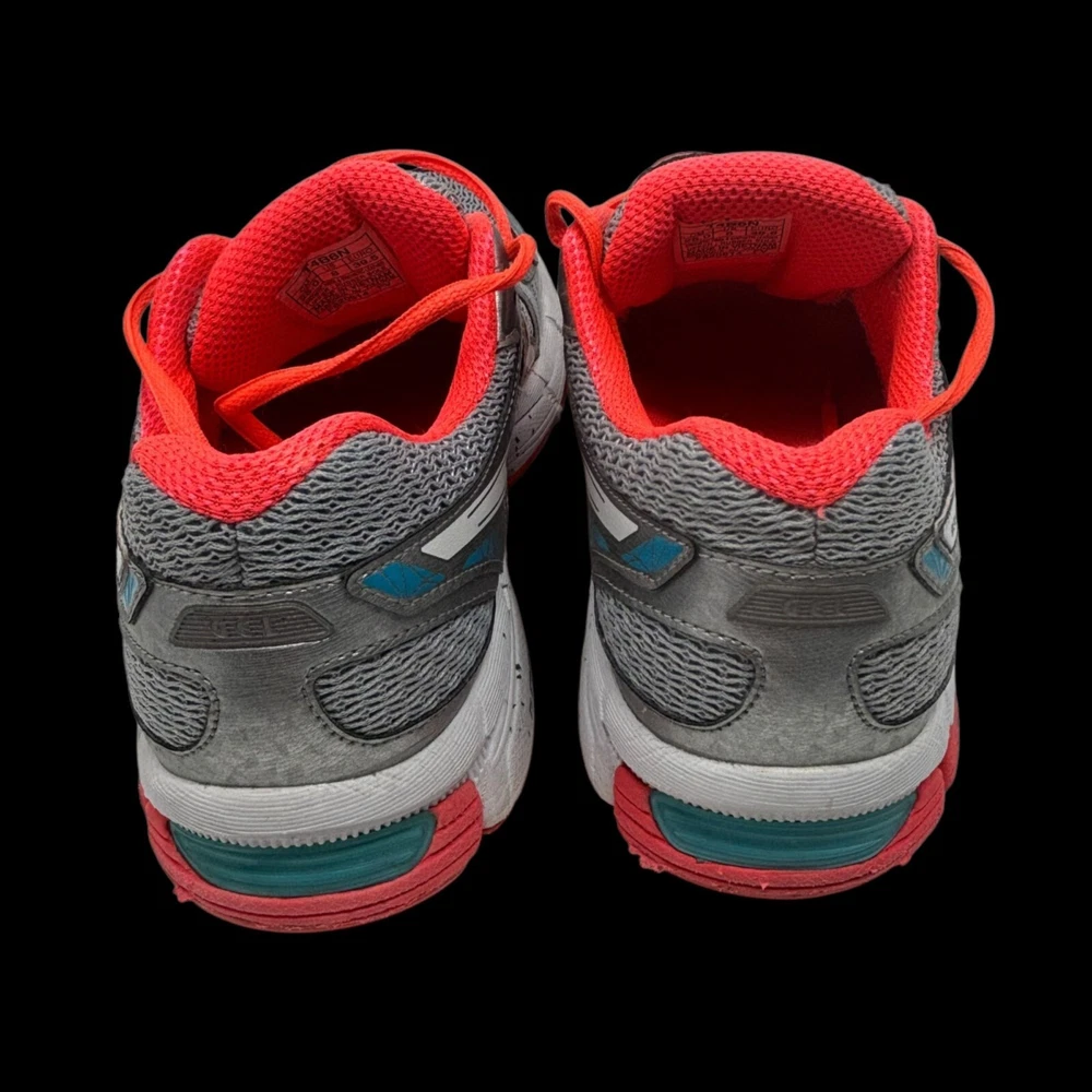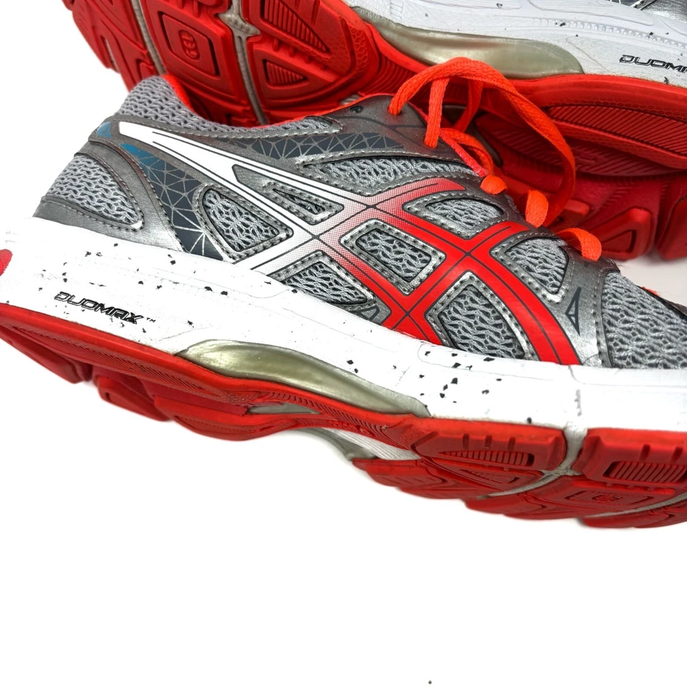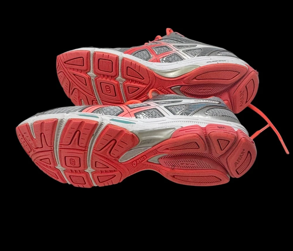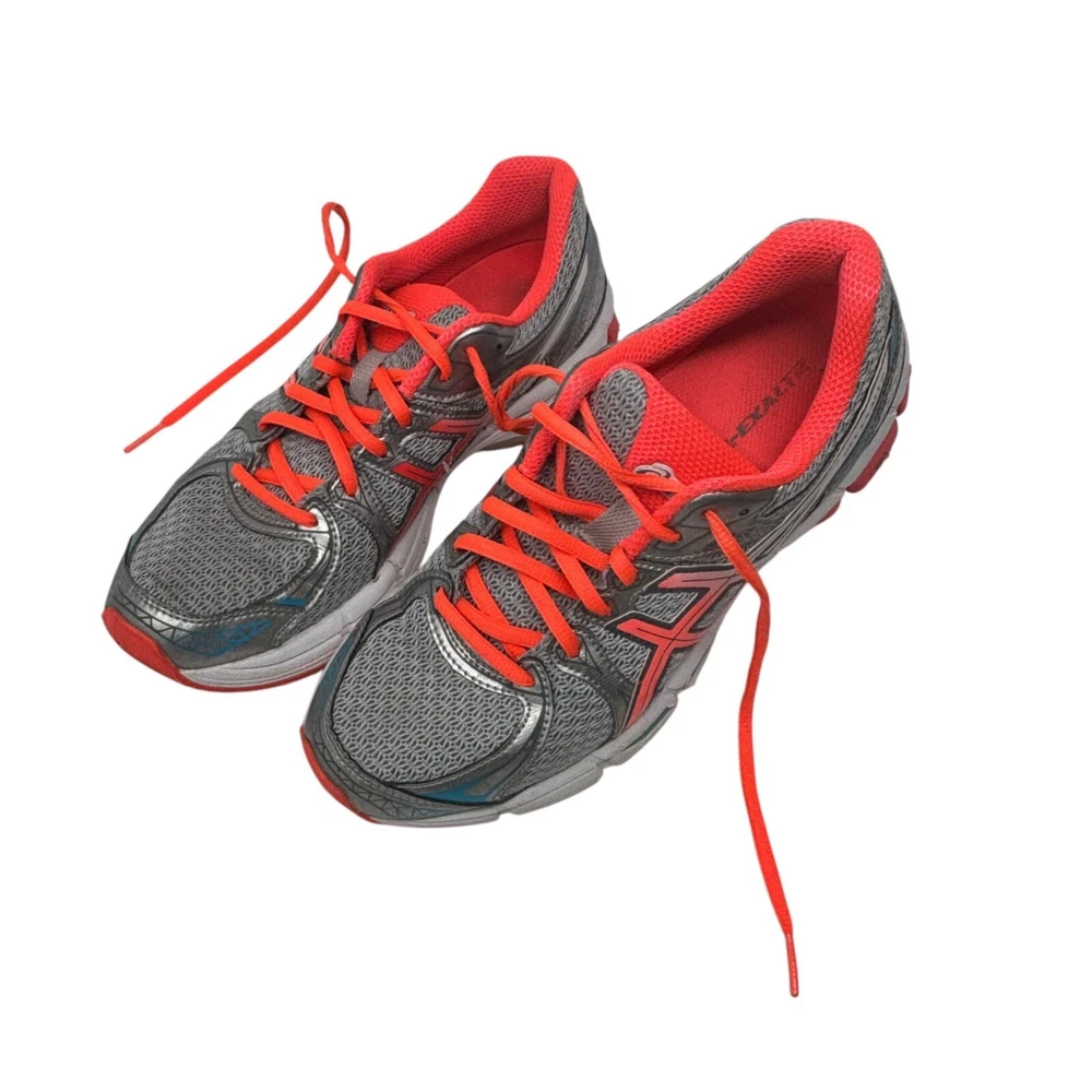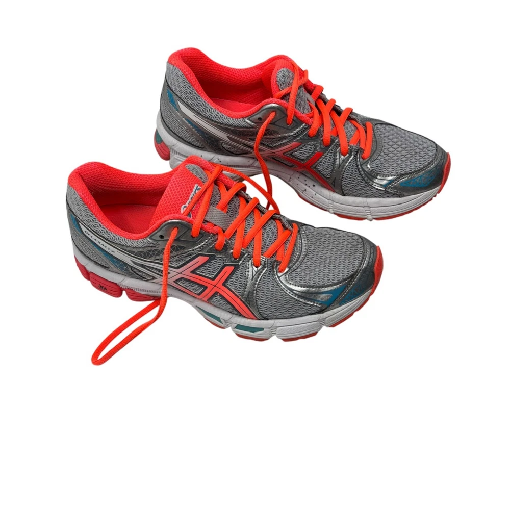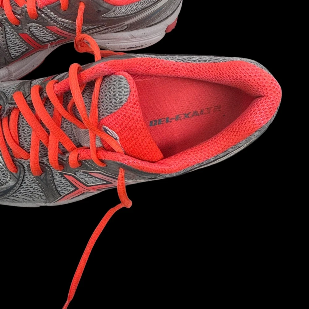 These Asics Gel-Exalt 2 shoes blend style and functionality. Designed with a lightweight construction, they offer comfort and support for running. • Lace-up closure • Removable insole • Shock absorption • Breathable mesh upper • Durable rubber sole Minor scuffs on the sides, visible on soles. Heel to toe = 10.5 inches.