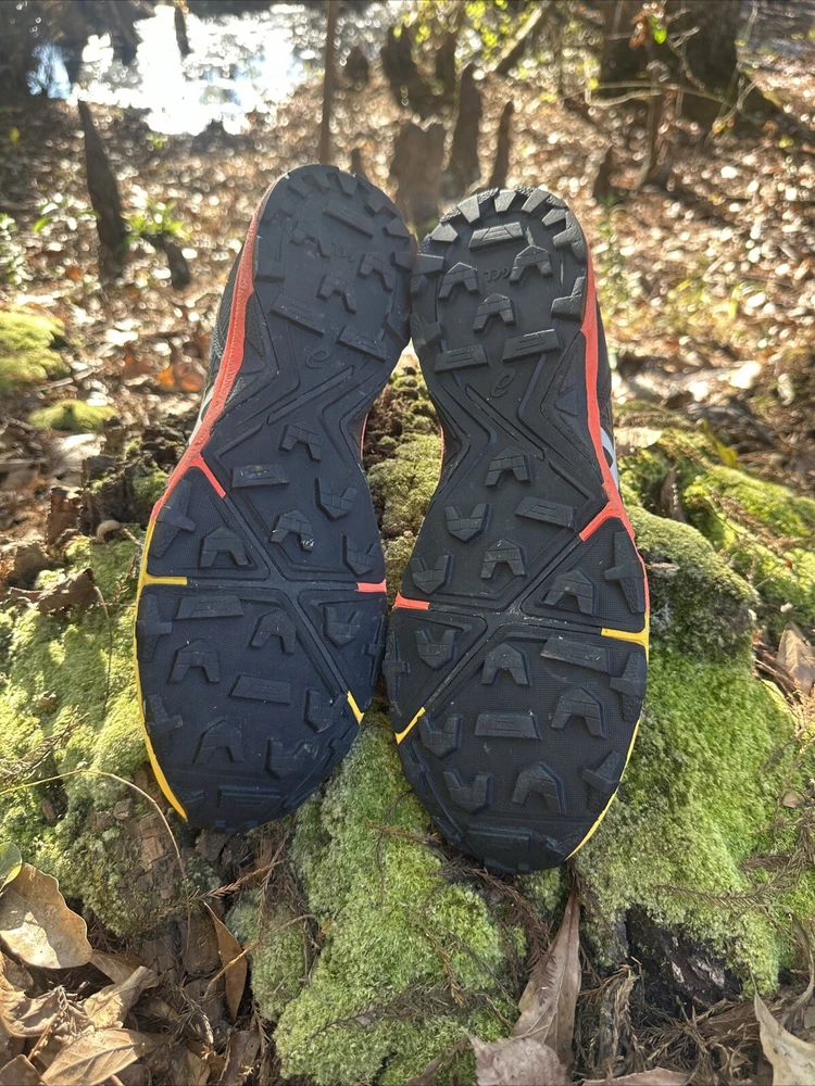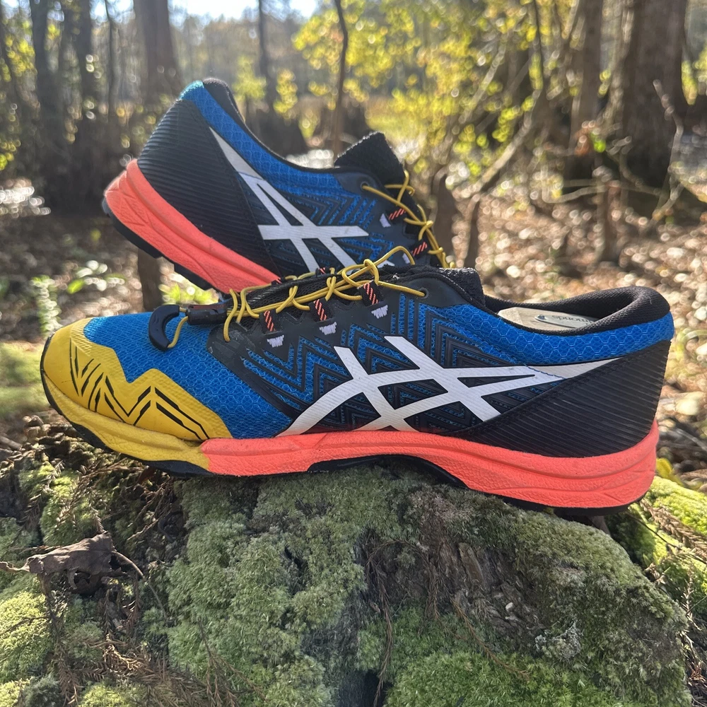 Shoes are in excellent condition. Please see pictures for an accurate description. Same day as a shipping. Pet loving, smoke-free shipping home. The Asics Gel-Fujitrabuco Sky Trail Running Shoes are primarily designed for trail running. They are specifically engineered to handle the unique challenges of off-road trails, which include uneven surfaces, rocky paths, and varying weather conditions. Key purposes include: 1. **Traction**: The specialized outsole provides grip on slippery or rugged terrain, enhancing stability. 2. **Comfort**: The cushioning technologies like Gel and FlyteFoam allow for comfort during long runs, absorbing shock and reducing fatigue. 3. **Durability**: They are built with materials that withstand the wear and tear of outdoor environments, ensuring longevity. 4. **Protection**: Features in the shoe design help protect the feet from rocks, roots, and other trail debris. Overall, these shoes cater to runners who enjoy exploring nature and need reliable footwear for challenging trail conditions. Get ready to tackle any trail with these limited edition Asics Gel-Fujitrabuco Sky Trail Running Shoes. Featuring a colorful and vibrant design with the ASICS logo, these shoes are perfect for outdoor enthusiasts who love to explore off the beaten path. The shoes are lightweight and comfortable, with a breathable mesh upper material that keeps your feet cool and dry even in hot weather. The shoes have a rubber outsole for optimal grip and traction, and a foam insole for added comfort. They come with an adjustable strap and drawstring closure for a secure fit, and have arch support to prevent foot fatigue. Whether you're cross training, CrossFit, or just love to run and jog, these Asics Fujitrabuco Sky Trail Running Shoes are the perfect addition to your activewear or workwear wardrobe.