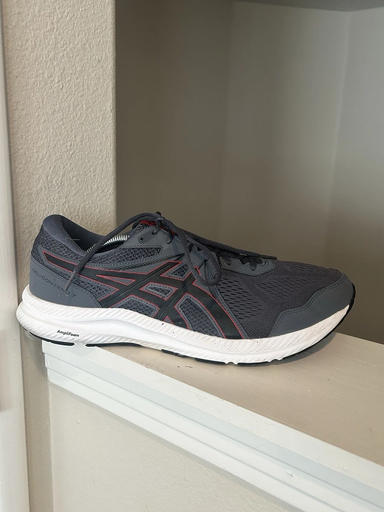 Elevate your running game with these Asics GEL-Contend 7 Running Shoes in style code 1011B040. The sleek black design with hints of red and grey is perfect for any athletic look. These shoes feature a low top shoe shaft style and standard shoe width, making them comfortable for any type of athletic activity. The ASICS brand is known for its quality and these shoes are no exception. They are perfect for men who enjoy sports and want a comfortable and stylish shoe to wear during their activities. Whether you're running, hiking, or just need a comfortable shoe for everyday wear, these Asics GEL-Contend 7 Running Shoes are a great choice.
