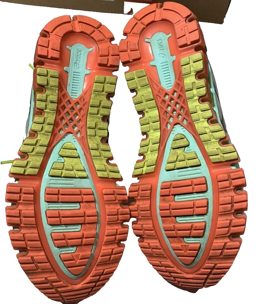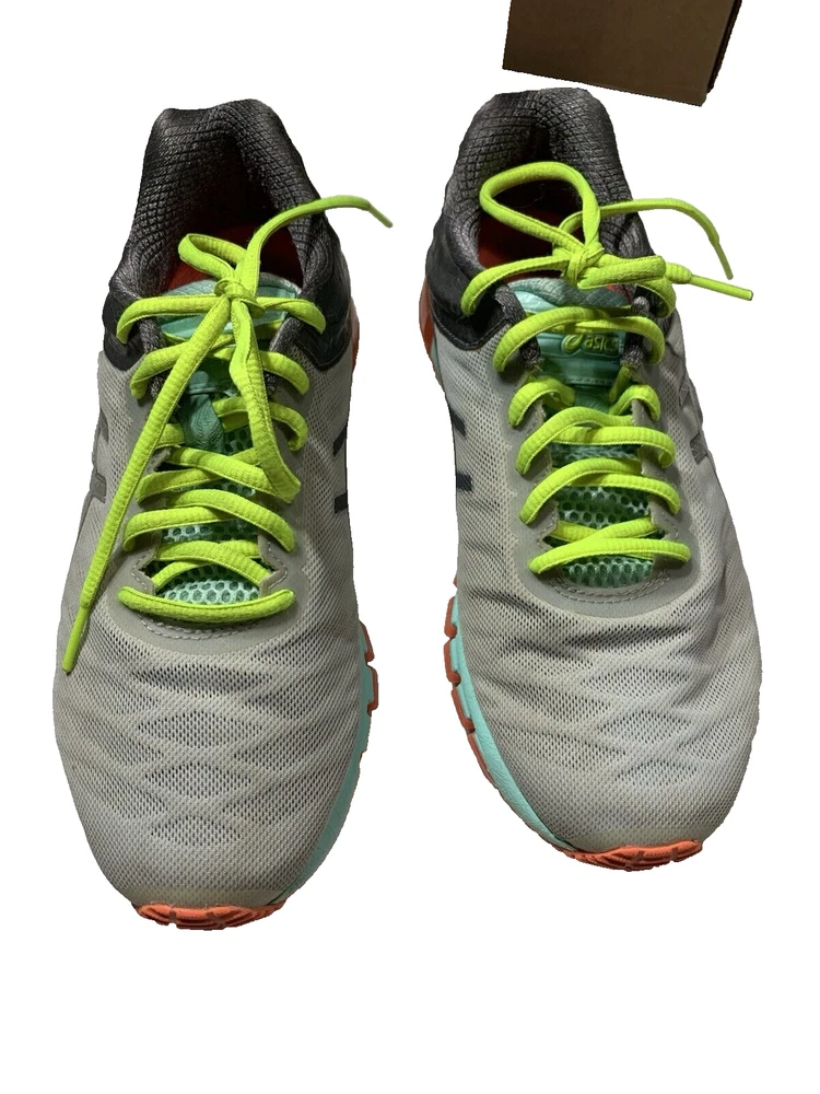 The Asics Women's Gel Quantum 180 T5J7N Sneaker Running Shoes in size 6.5 feature a low top shaft style in a solid gray color with green accents. These lace-up sneakers are designed for activewear, casual wear, and workwear, suitable for walking and running activities. The shoes have a cushioned and comfortable design, with a synthetic upper material and fabric lining. The outsole is made of rubber for traction, and the shoes are part of the ASICS GEL-Quantum product line, known for their quality and performance in athletic footwear.