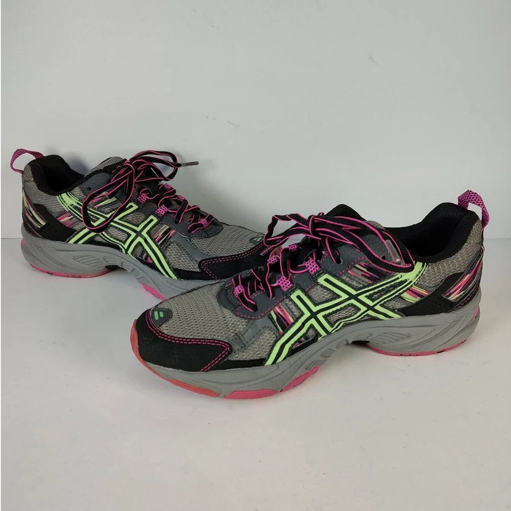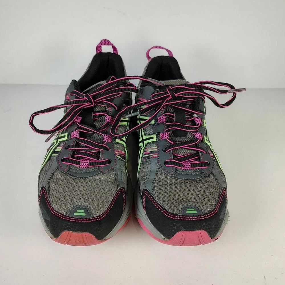 Asics Gel-Venture 5 - Grey and pink asics running shoes, womens size 8.5. Theyre in great condition, no holes or stains. Theyve been thoroughly cleaned before listing Please reference photos before purchasing