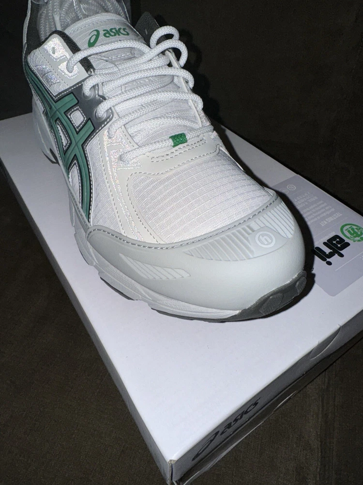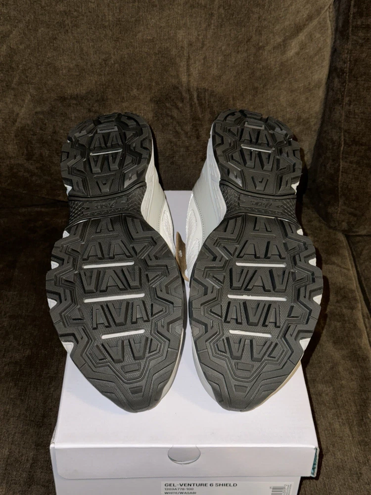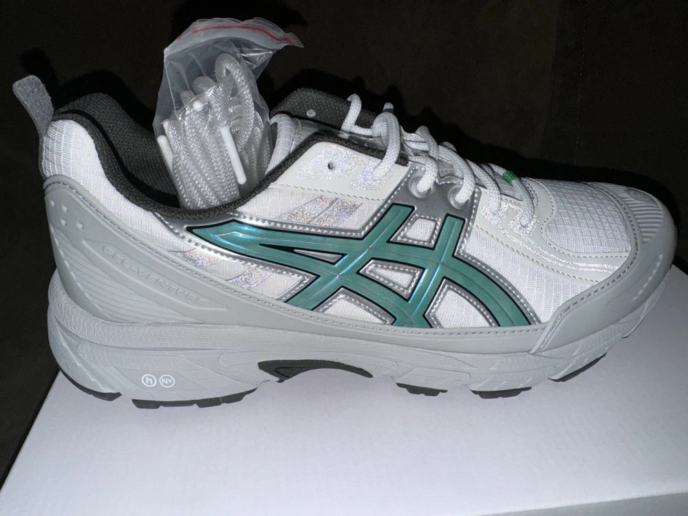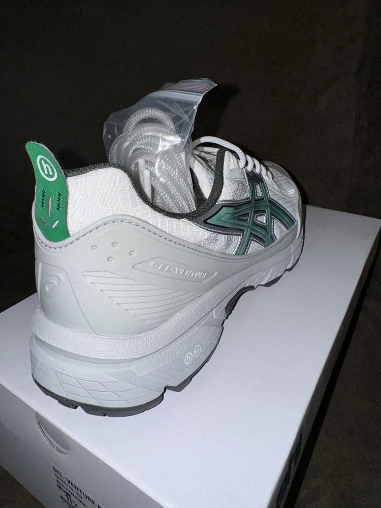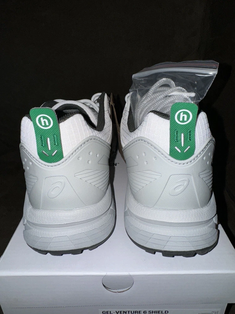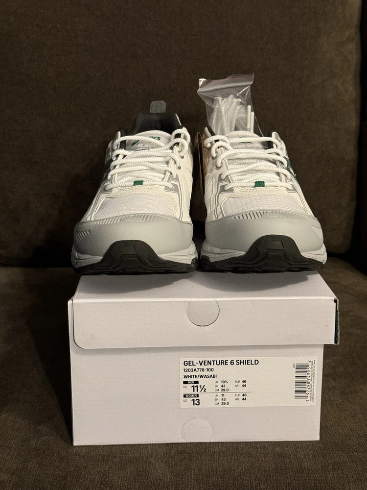 Elevate your sneaker game with the Hidden NY x ASICS Wasabi Gel Venture 6 Shield. This ComplexCon exclusive sneaker. Comes with extra laces. Fashion and trail influences collide to create the GEL-VENTURE® 6 SHIELD sneaker. Harnessed with functional features, this shoe is versatile for various conditions. The upper's conventional look is disrupted with rugged mesh paneling and a TPU wrap that helps shield your feet from the elements. Meanwhile, the tooling features rearfoot GEL® technology and a trail-specific traction pattern. These components work in unison to provide advanced shock absorption and grip on various surfaces.