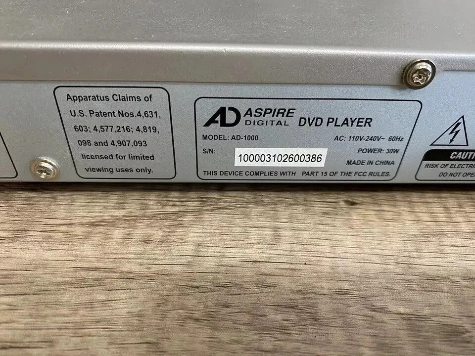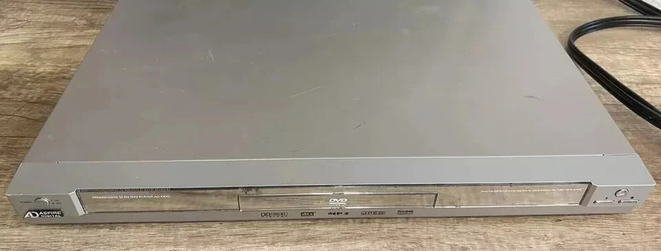 The Aspire Progressive Digital AD-1000 DVD Player is a sleek and versatile unit that supports various media formats such as CD, MP3, and DVD. This DVD player features a digital tuner, making it a great addition to your home entertainment setup. With its silver color and compact design, it is sure to blend in seamlessly with your TV and audio equipment. The unit does not come with a remote, but it does include AV cords for easy connectivity. Perfect for enjoying your favorite movies and music with high-quality sound and visuals.