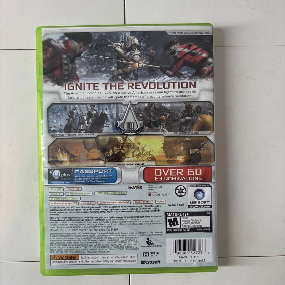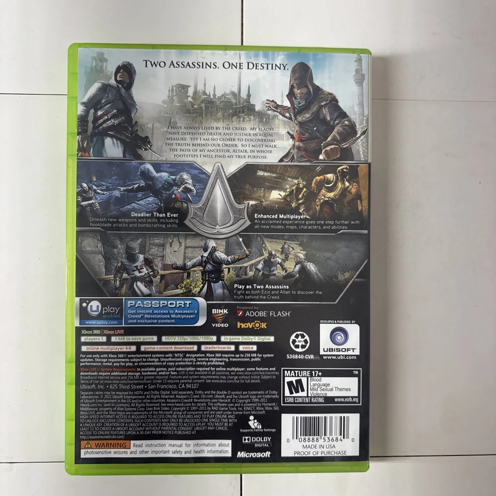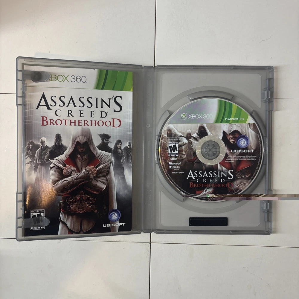 The product is a set of seven Xbox 360 games from the Assassin's Creed series, including Assasins Creed four main stories, the Ezio Trilogy, and Rogue. These action and adventure games are published by Ubisoft and have a mature rating. The first game released in 2007, players take on the role of a master assassin as they navigate through a rich, immersive world filled with espionage, combat, and intrigue. With its engaging gameplay and captivating storylines, this series has gained a loyal following among fans of the genre.
