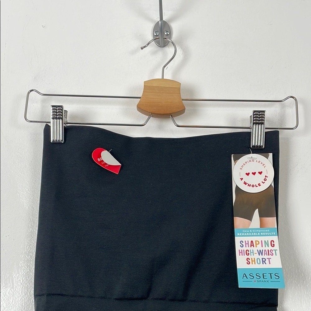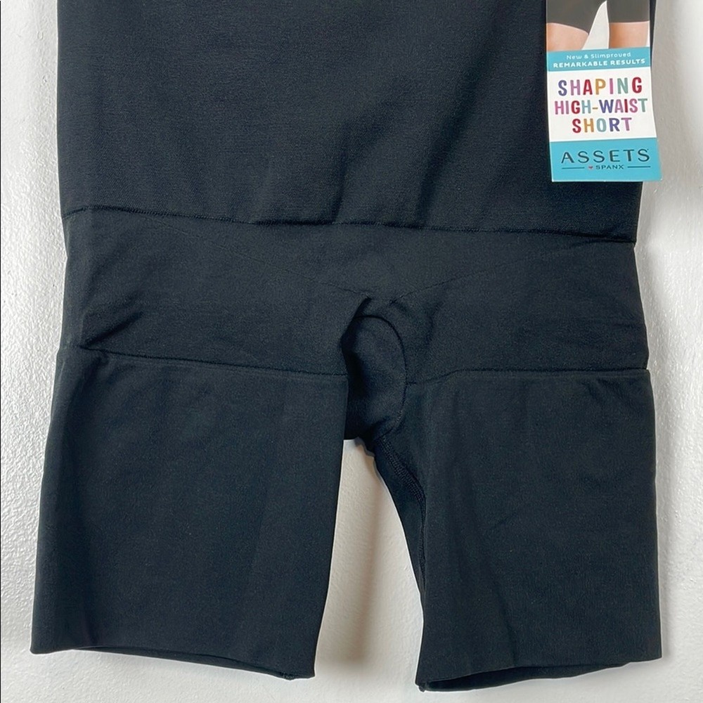 Assets By Spanx Women's XL Black High-Waist Shaping Breathable Stretch Shorts. FEATURES: Flaws: NWT, None visible, See Measurements Below Style Profile: Sleek black high-waist shaping shorts. Perfect for a smooth silhouette. Approximate measurement Waist: 24" Inseam: 5.5" 44-13-0044205012025