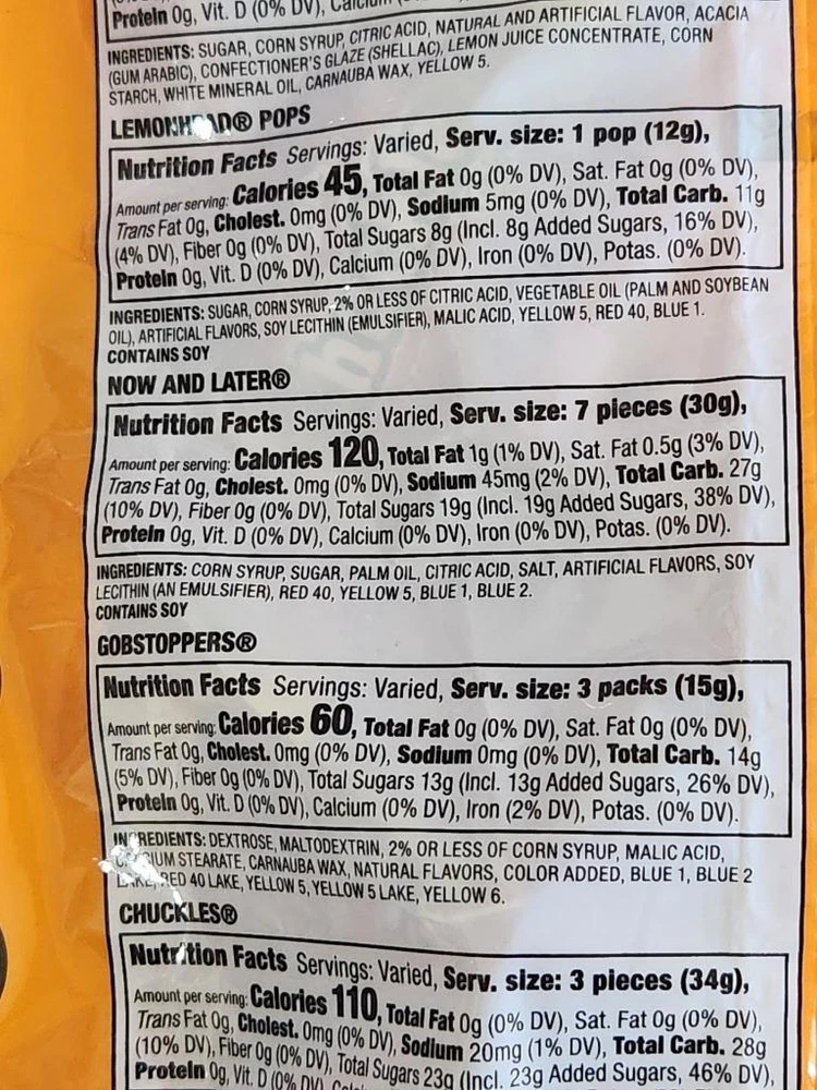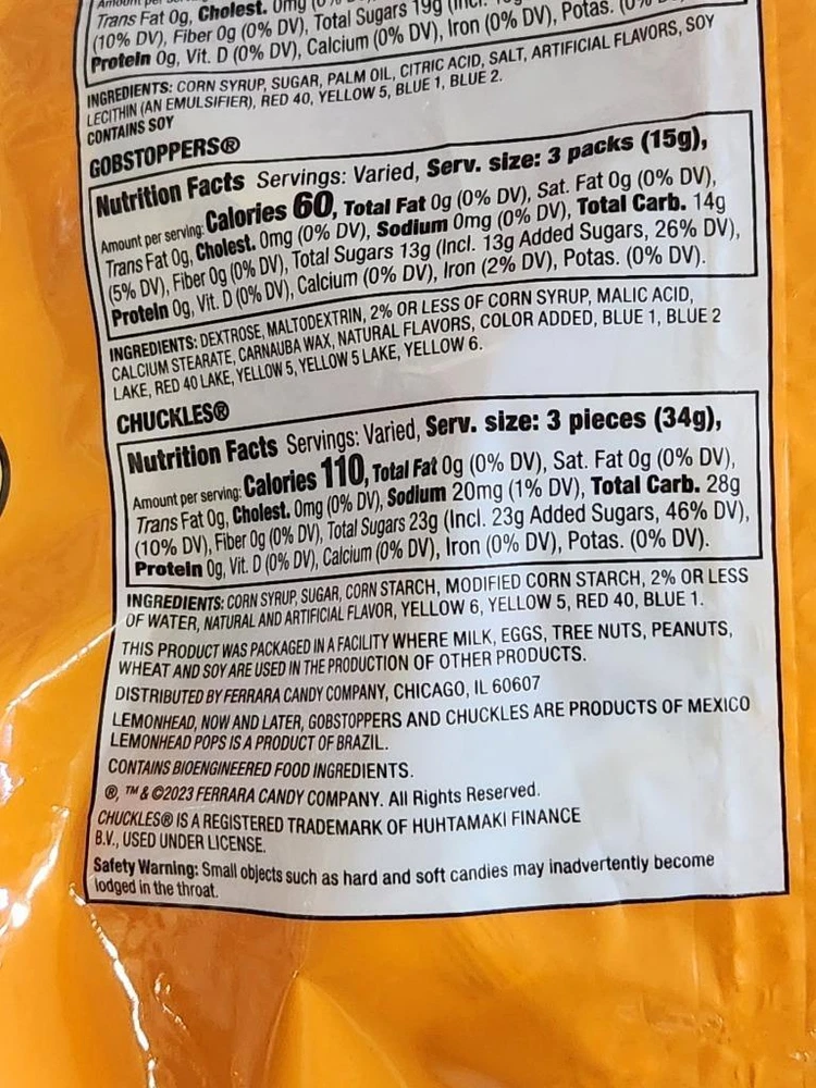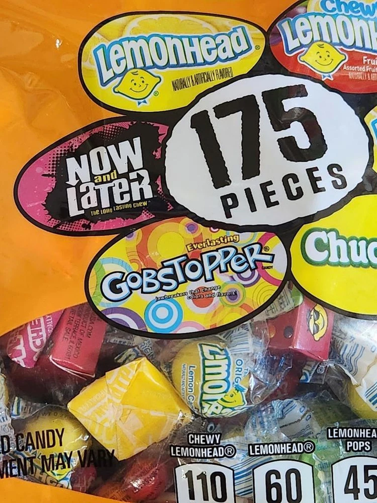 Assorted Bulk Candy Individually Wrapped Candy Mix Pinata Candy for Party 2.5Lb Assorted Bulk Candy Individually Wrapped Candy Mix Pinata Candy for Party 2.5Lb Click images to enlarge Description Assorted Bulk Candy Individually Wrapped Candy Mix Pinata Candy for Party 2.5Lb - 175 Pieces Includes: Lemonhead, Chewy Lemonhead Fruit Mix, Lemonhead Pops, Now & Later, Gobstopper, and Chuckles. 175 Pieces individually wrapped. Check out pictures. We Have the Best / Lowest Prices on the Internet! We Have Thousands of Great Deals with New Inventory Being Added Daily! If You Are Not Completely Satisfied With Your Purchase, PLEASE EMail Us Within 30 Days Of Receiving So That We Can Rectify The Situation. WE REIMBURSE RETURN SHIPPING COSTS FOR ANY NOT AS DESCRIBED PRODUCT THAT WE SELL. WE SHIP WITHIN 24 HOURS OF RECEIPT OF PAYMENT (Most Times Same Day). ALL ITEMS ARE SHIPPED WITH A DELIVERY CONFIRMATION NUMBER EMail Us If You Need Additional Photos On This Or Any Other Item That We Have For Sale, We Would Be Happy To Accommodate You. Check Out Our Great Selection Of " Buy It Now " Merchandise In Our Store!! Get images that make Supersized seem small. Showcase your items with Auctiva's Listing Templates! THE simple solution for eBay sellers. Track Page Views With Auctiva's Counter