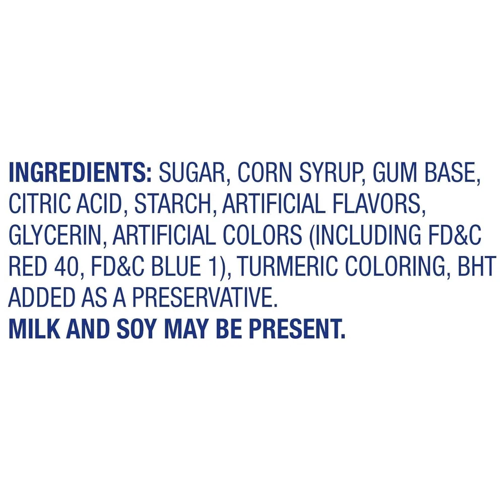Chewy, bubble gum center surrounded by a delicious, fruit-flavored, hard candy shell 100-Count Box of Assorted Flavors Charms Blow Pops Assorted flavors include Grape, Strawberry, Blue Razz Berry, Cherry, Watermelon, and Sour flavors. Blow Pops fun fruit flavors are all Kosher, Peanut Free and Gluten Free. Each Charms Blow pop is individually wrapped to maintain its freshness until you are ready to enjoy this unique dual candy and gum treat. Allergen information: pork_free