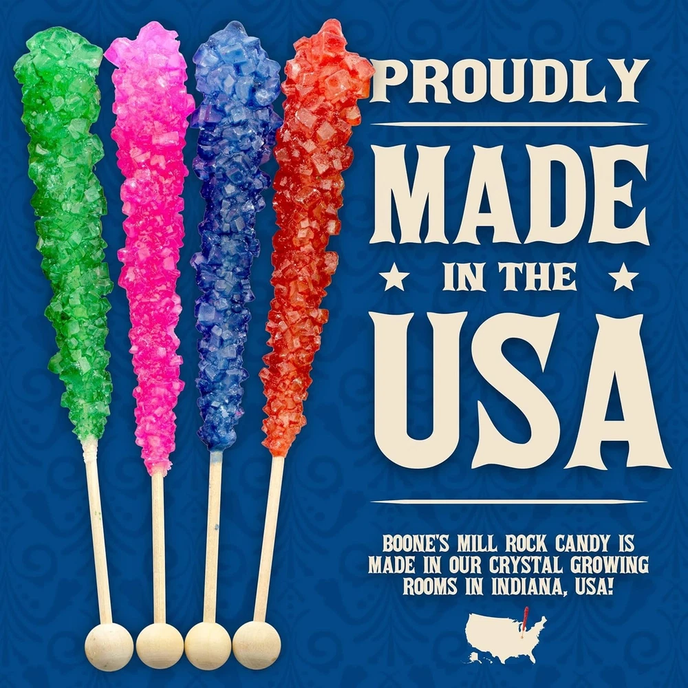Assorted Flavor XL Rock Candy Sticks – 36 Count Party-Ready Treats – USA Crafted ‹ › ‹ › ‹ › ‹ › ‹ › ‹ › ‹ › ‹ › Assorted Flavor XL Rock Candy Sticks – 36 Count Party-Ready Treats MADE IN USA: Unlike other rock candy, our exquisite treats are proudly crafted in the USA, in Indiana. We cultivate our own sugar crystals with ingredients sourced domestically to ensure that you experience the vibrant sweetness of American quality. Product Highlights: 36 count of assorted flavor rock candy sticks, perfect for parties and celebrations. Stunningly brilliant colored crystals showcased through clear wrappers for an eye-catching display. Ideal for candy buffets, color-coordinating decorations, weddings, and festive events. Flavorful selections include: Pink Cotton Candy, Red Cherry, Blue Raspberry, and Green Watermelon. Nutrition information conveniently included on the tub label for informed indulgence. Large stick sizes ranging from 20-35 grams, making them the largest on Amazon! Why Choose Our Rock Candy Sticks? Bring a sweet touch to your celebrations with our Assorted Flavor XL Rock Candy Sticks! Their vibrant colors and delightful flavors ensure they will charm both adults and children alike. Perfectly fitting for any occasion, these handcrafted treats add a whimsical and colorful centerpiece to your candy buffet or dessert table. You deserve the best; indulge in the nostalgic flavors that evoke smiles and laughter as guests enjoy their sweet confections. With 36 sticks, you'll have ample supply for gatherings, parties, or just a special treat at home. Don't settle for ordinary when you can offer extraordinary - order your Assorted Flavor XL Rock Candy Sticks today and make every occasion even sweeter! Shipping Free & Fast Shipping - We offer free shipping to most of the USA with a normal delivery time of 3-7 days. However, due to the current situation, additional delivery time (up to 3 weeks) may be required for some items. Alternative Carriers - We may use alternative carriers (e.g. USPS, FedEx, UPS, etc.) to ensure your package arrives safely and on time. Due to the use of multiple carriers, we are unable to provide a tracking number automatically. Handling Time - Orders are processed and shipped within 1-2 business days of receiving cleared payment. Shipping Restrictions - Shipping to Alaska, Hawaii, Puerto Rico, Guam, and other US territories may incur shipping charges or delivery restrictions. Please contact us before ordering, or your order can be refunded/cancelled. State Restrictions - There may be restrictions based on your state of purchase. For example, certain items may not be shipped to California due to state regulations. Contact for Tracking Updates - If you require tracking updates or have any concerns about the delivery of your order, please feel free to contact us, and we will be happy to assist you. Return 30-Day Hassle-Free Returns - We want you to be completely satisfied with your purchase. If you are not, you can return the item within 30 days of receiving it for a full refund or exchange. Easy Return Process - To start a return, simply contact us and we will provide you with a prepaid return shipping label and detailed instructions. Restocking Fee - There are no restocking fees for returns. However, the buyer is responsible for return shipping costs if the return is not due to a seller's error. Refund Processing Time - Refunds will be processed within 5 business days of receiving the returned item in its condition. Payment We accept all major credit cards, PayPal, and Apple Pay for your convenience. Your payment information is secure and encrypted to ensure a safe and seamless transaction. Please complete your payment within 3 days of purchase to avoid any delays in shipping. Feedback Your feedback is extremely important to us. We strive to provide the best products and customer service possible. If you are satisfied with your purchase, please take a moment to leave us a positive review. If you have any concerns or issues with your order, please contact us before leaving negative feedback. We are committed to resolving any problems and ensuring your satisfaction. Contact Us If you have any questions or concerns, please feel free to out to our customer support team. You can contact us through the eBay messaging system. We are available Monday to Friday, 9:00 am to 5:00 pm EST, and we will do our best to respond to your inquiry within 24 hours. Buy it now and enjoy a pleasant shopping experience! Expiration Date: Rock Candy Sticks Calories per 100 g/mL: Rock Candy Sticks Course: Dessert Number in Pack: 36 Style: Rock Crystal Candy Unit Quantity: 36 Sticks Flavor: Cotton Candy,Pink Cotton Candy,Red Cherry,Blue Raspberry,Green Watermelon Food Specifications: Gluten Free Allergens: None Product: Boiled & Hard Sweet Shape: Stick Type: Rock Candy Stick Packaging: Box Calories per Serving: Less Than 50 Number of Servings: 36 Serving Size: 20-35 Grams Occasion: Party Item Weight: 1.35 pounds