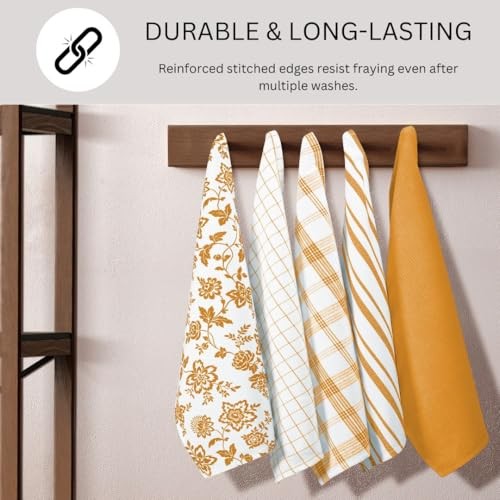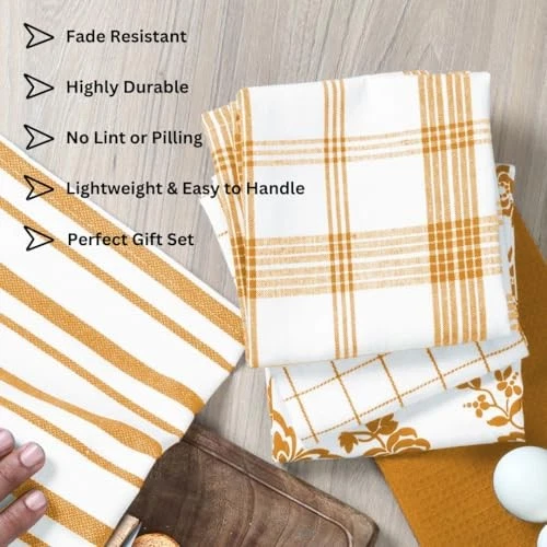 Return Policy Fast Delivery Trusted seller Assorted Kitchen Towels 100% Cotton 16x26 Inch - Super Absorbent, Soft & Quick Drying, Multi-Purpose for Drying & Cleaning, Ideal for Kitchen & Home Use, Set of 5 Low-Lint Dish Towels Yellow Product Description 100% PREMIUM COTTON: Made from 100% natural cotton fibers, these dish towels offer superior softness and breathability. The high-quality cotton ensures maximum absorbency and durability, making them a reliable kitchen companion for everyday use. SUPER ABSORBENT & QUICK-DRYING: The natural cotton fibers are designed for exceptional absorbency, making these dish towels perfect for soaking up spills, drying dishes, or wiping countertops. They also feature a quick-drying design, reducing the risk of musty odors and ensuring they’re ready for repeated use throughout the day. DURABLE & LONG-LASTING: Built to withstand frequent use and washing, these kitchen towels feature reinforced edges and strong stitching for added durability. They maintain their shape and effectiveness even after multiple machine washes. ASSORTED COLORS & PATTERNS: This 5-pack includes an assortment of stylish colors and patterns to complement any kitchen décor. The variety allows you to rotate between towels, ensuring a fresh look every day while adding a decorative flair to your kitchen space. WASHABLE & EASY TO MAINTAIN: Designed for hassle-free cleaning, these kitchen towels are machine washable and become softer with each wash. They maintain their shape, absorbency, and vibrant colors even after multiple washes. For best results, wash in cold water and tumble dry on low heat. Shipping Returns Payment Shipping Shipping is FREE to all addresses other than APO/PO boxes in the lower 48 states. All our stock ships from US-based warehouses. Shipped via USPS or UPS (depending on location and package weight) Unless stated otherwise, all orders will ship within 24-72 hours of your payment being processed. Check our feedback to see the great reviews of FAST shipping we offer. Returns Seller does not accept returns Payment We currently accept payment via eBay managed payments only. Once payment is cleared, we will dispatch your shipment within 1-3 business days. Please refer to the "Shipping" tab for more information regarding shipping speed to your destination.